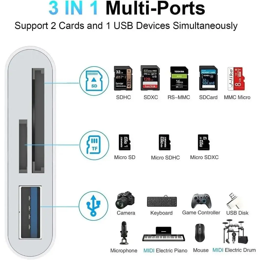 Triple Card Slots: Includes USB-A/SD/MicroSD.