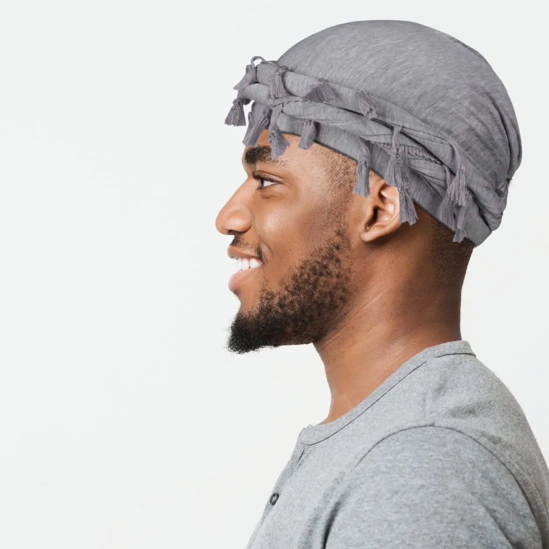 Made from premium, soft, stretchy, and durable fabric that does not deform or emit odors. The vintage elastic beanie cap circumference is 21.25" and more, suitable for most head sizes. The satin-lined hair turbans have a pre-tied braids tail that is 36.22" in circumference, and are also ideal for various hair wrap styles. This African men's head wrap keeps your hair in place while keeping you cool and comfortable.