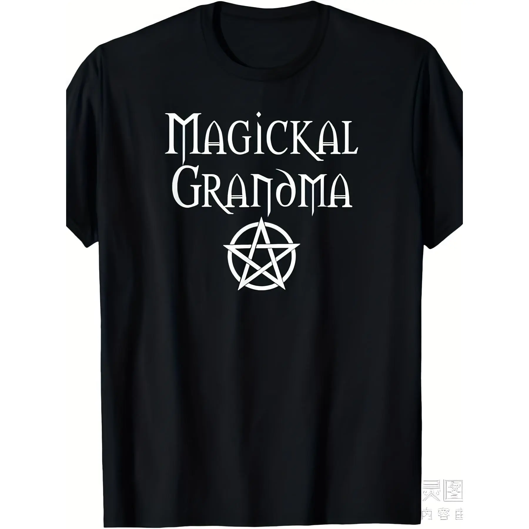 Camiseta Abuela Mágica Bruja Desvergonzada Wicca Pagan - Camiseta Gráfica Retro Unisex con Pentagrama y Letras, Top de Manga Corta de 220gsm de Peso Pesado con Cuello Redondo para Hombres y Mujeres, Regalo Brujo para el Día de la Madre, Eventos Wicca y Pa