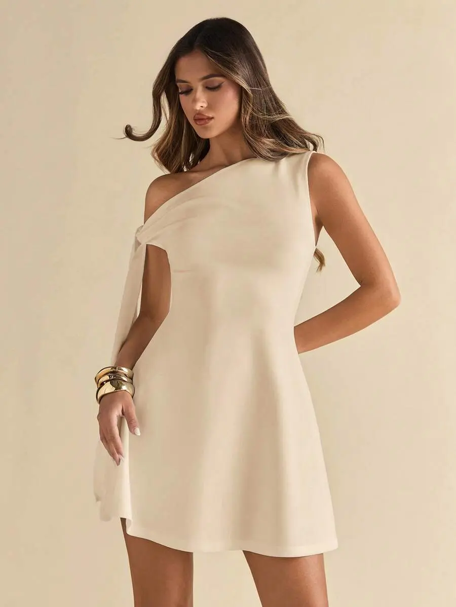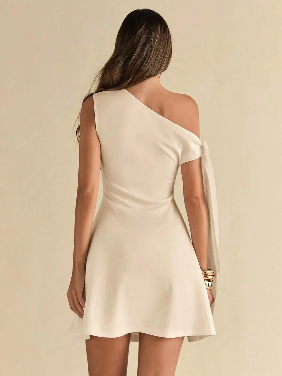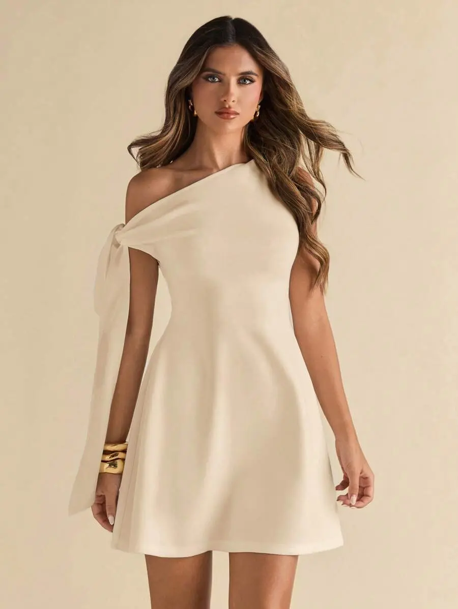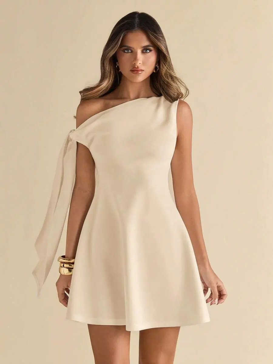 ARTYOTI Women's Asymmetric Tie-Up Shoulder Black Bodycon Elegant A-Line Ruffle Hem Skirt Business Casual Woman,Valentine's Day,Valentine Outfits For Women