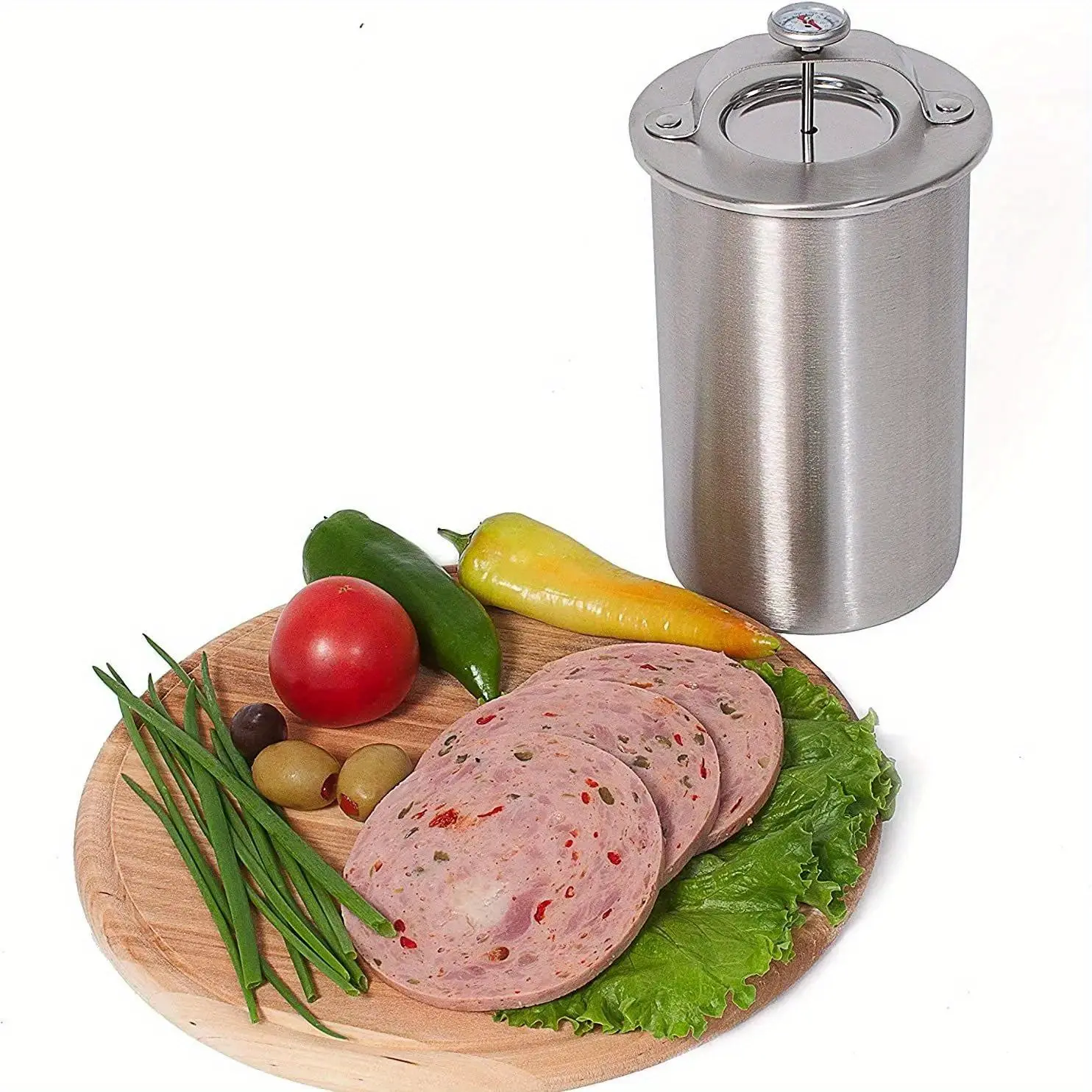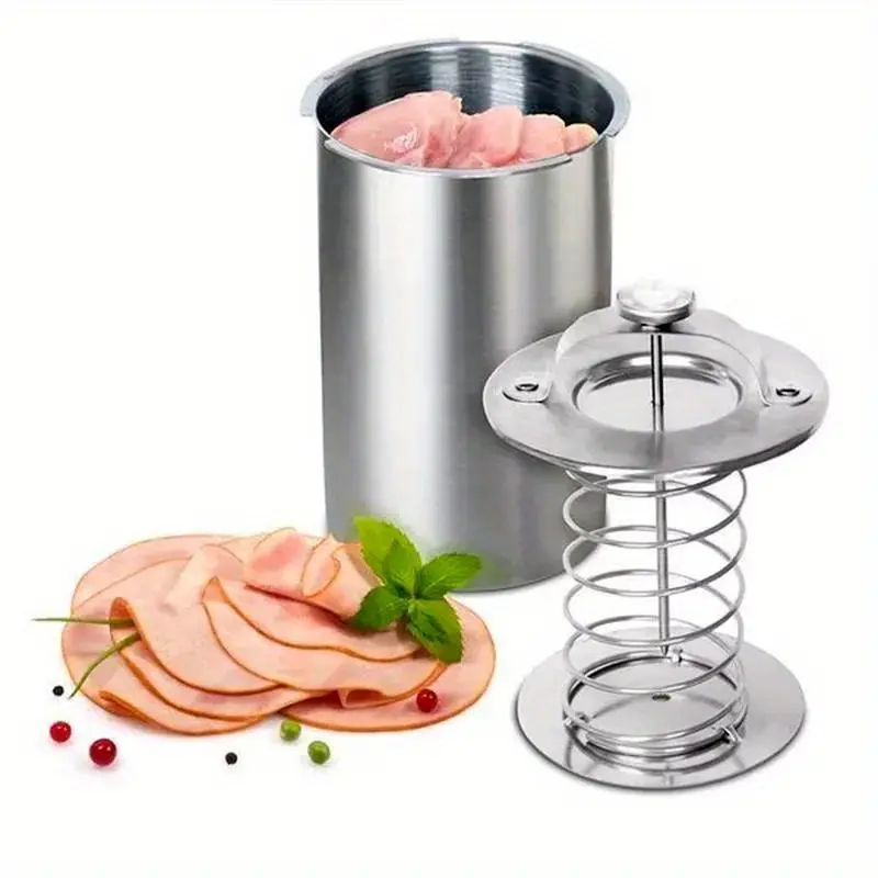 Stainless Steel Meat Press Cooker for Preparing Healthy Homemade Deli Meats, Complete with a Thermometer - Ideal for Kitchen Bacon Pressure Cooking