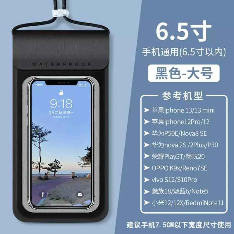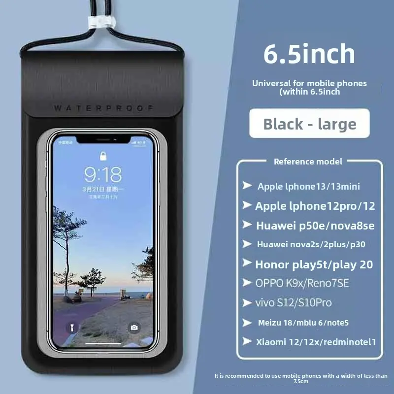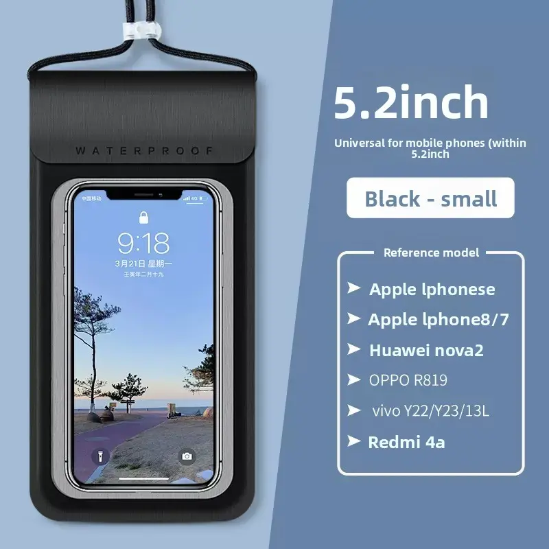 The ultra-sensitive, crystal-clear TPU window lets you fully operate your phone, take photos, and use touchscreen features without opening the case, while the adjustable drawstring closure ensures a secure, leak-proof fit. Available in 5 stylish colors (black, white, mint green, pink, and beige), it offers a universal fit for most smartphones, making it perfect for personal use and bulk wholesale orders.