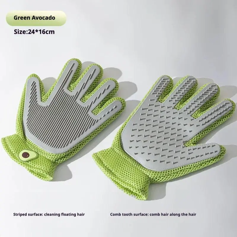 Introducing the 2-in-1 Pet Grooming Glove! Say goodbye to messy shedding. This revolutionary Cat and Dog Glove Brush combines functionality and comfort. The double-sided design ensures maximum efficiency, cleaning hair from both sides with a single swipe. Perfect for heavy shedders or gentle massages, it leaves coats sleek and homes fur-free.