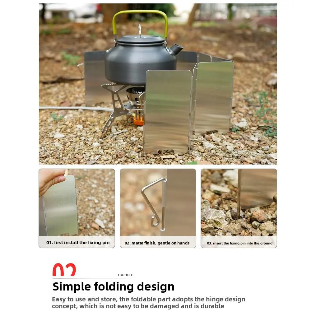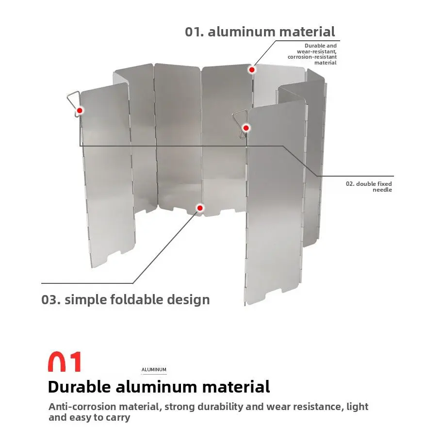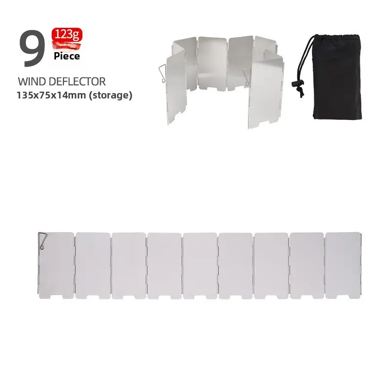 Elevate your outdoor cooking with this premium 9-piece folding camping wind screen, your ultimate solution for efficient, windproof cooking during camping, hiking, and picnics. Crafted from high-quality aluminum alloy, it delivers exceptional heat reflection and wind protection, boosting stove efficiency, saving fuel, and ensuring stable flame even in windy conditions.
