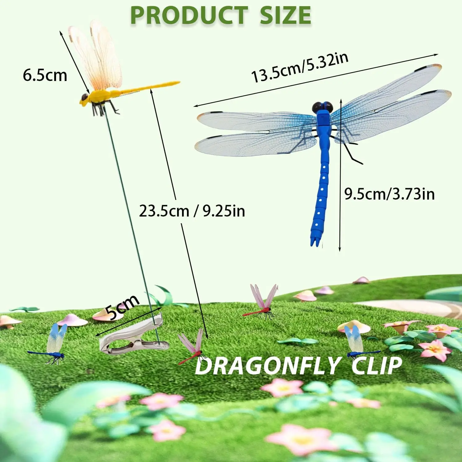 Weatherproof & Long-Lasting:Hand-painted with fade-resistant, waterproof coatings, these stakes withstand rain, sun, and wind. Measures 10" total length (dragonfly body: 2.1", wings: 4" per side) for high visibility in any landscape.