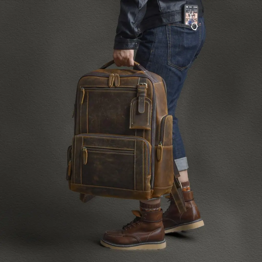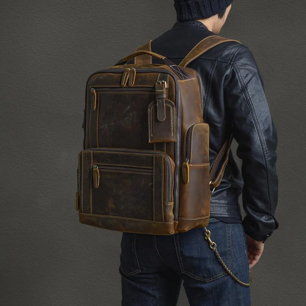Premium full-grain cowhide leather backpack designed with a timeless European retro style and modern functionality. Durable, breathable, and built for everyday performance, it keeps your essentials organized while maintaining a sleek, professional look.