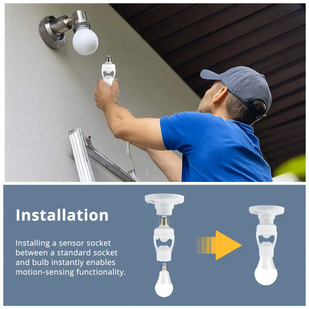 ✨ Motion Sensor E27 Socket Adapter with human body infrared detection. It offers a 6m detection range, ensuring your outdoor spaces are well-lit. Auto On/Off functionality saves energy and enhances security. No wiring required, making installation easy. Perfect for porches, garages, yards, and outdoor areas.
