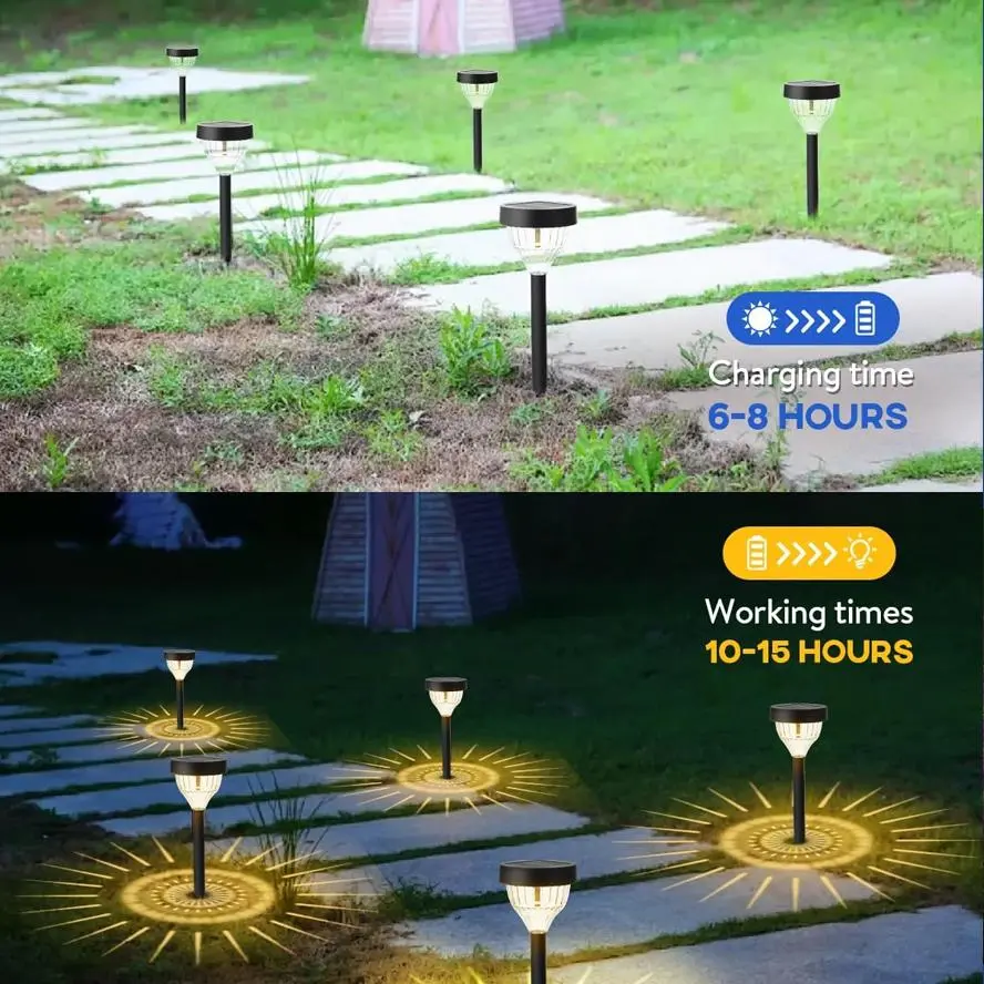 Equipped with high-power LED beads and a high-transparency lampshade for enhanced brightness. Projects stunning light patterns to elevate your garden, pathway, or patio.