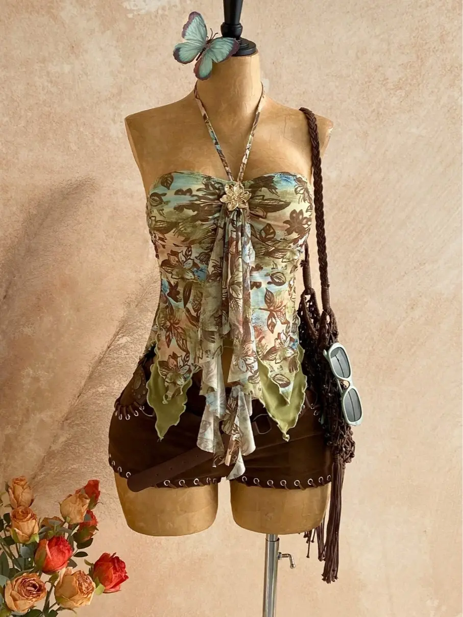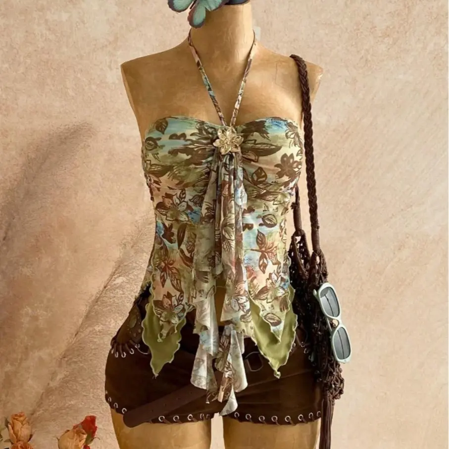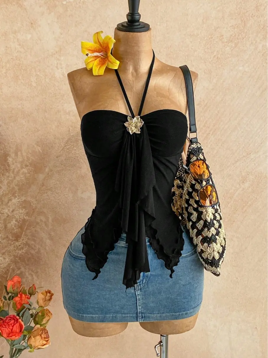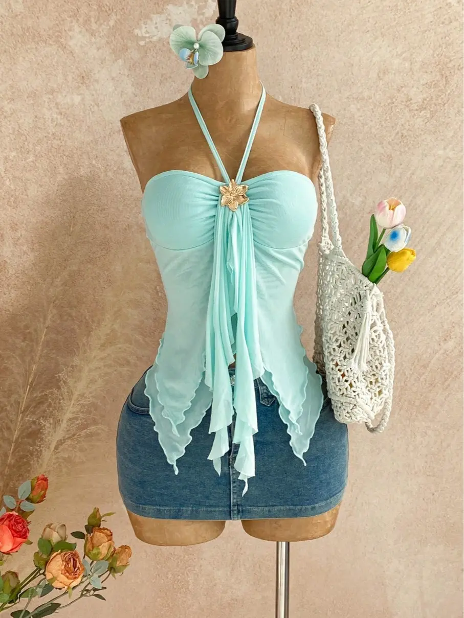 Women's Asymmetrical Hem Camisole With Seashell Decor, Suitable For Beach Vacation Summer Spring Casual Going Out Elegant Casual Tops For Women Sexy Tankini Swimsuit For Woman Vintage