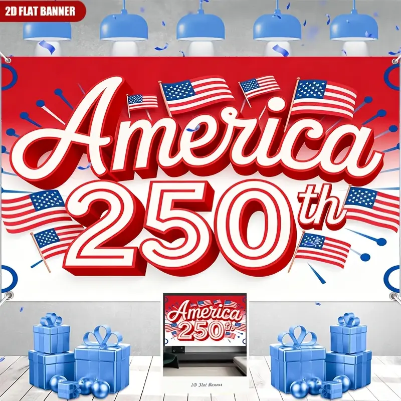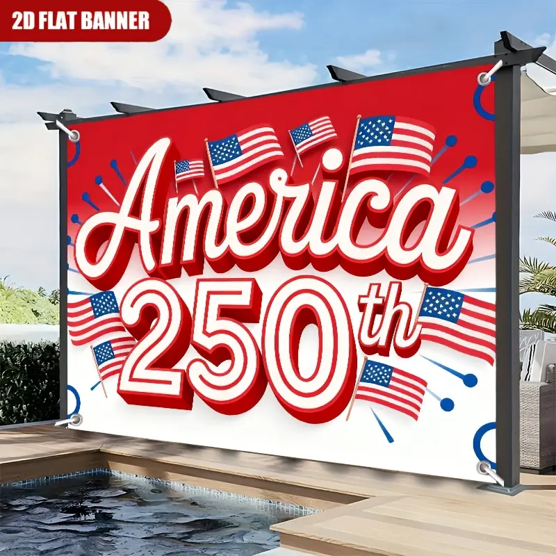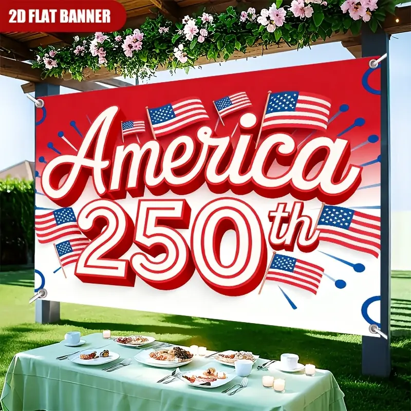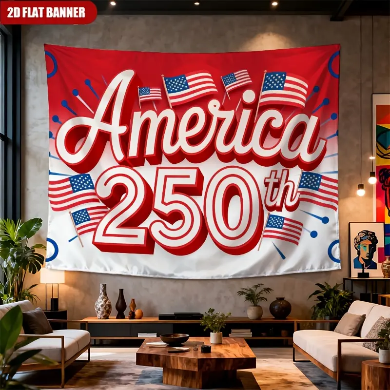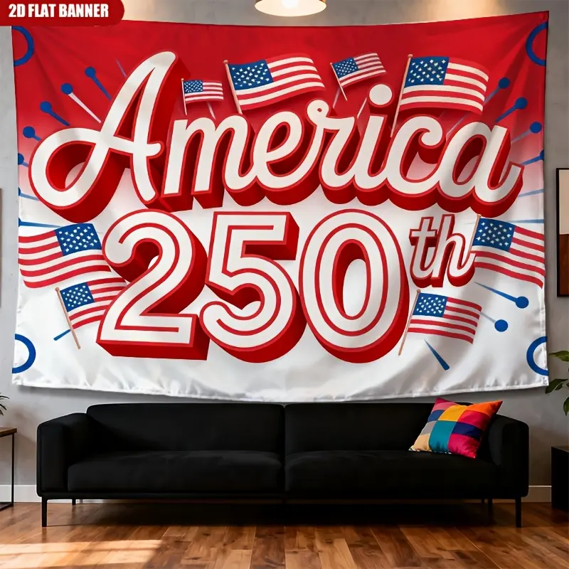 1pc Horizontal American 250th Anniversary Banner Tapestry 2026, Double-Sided Soft Fabric Wall Hanging for Indoor Outdoor Party Decor, Patriotic Gift for Historical Celebration & Room Decoration