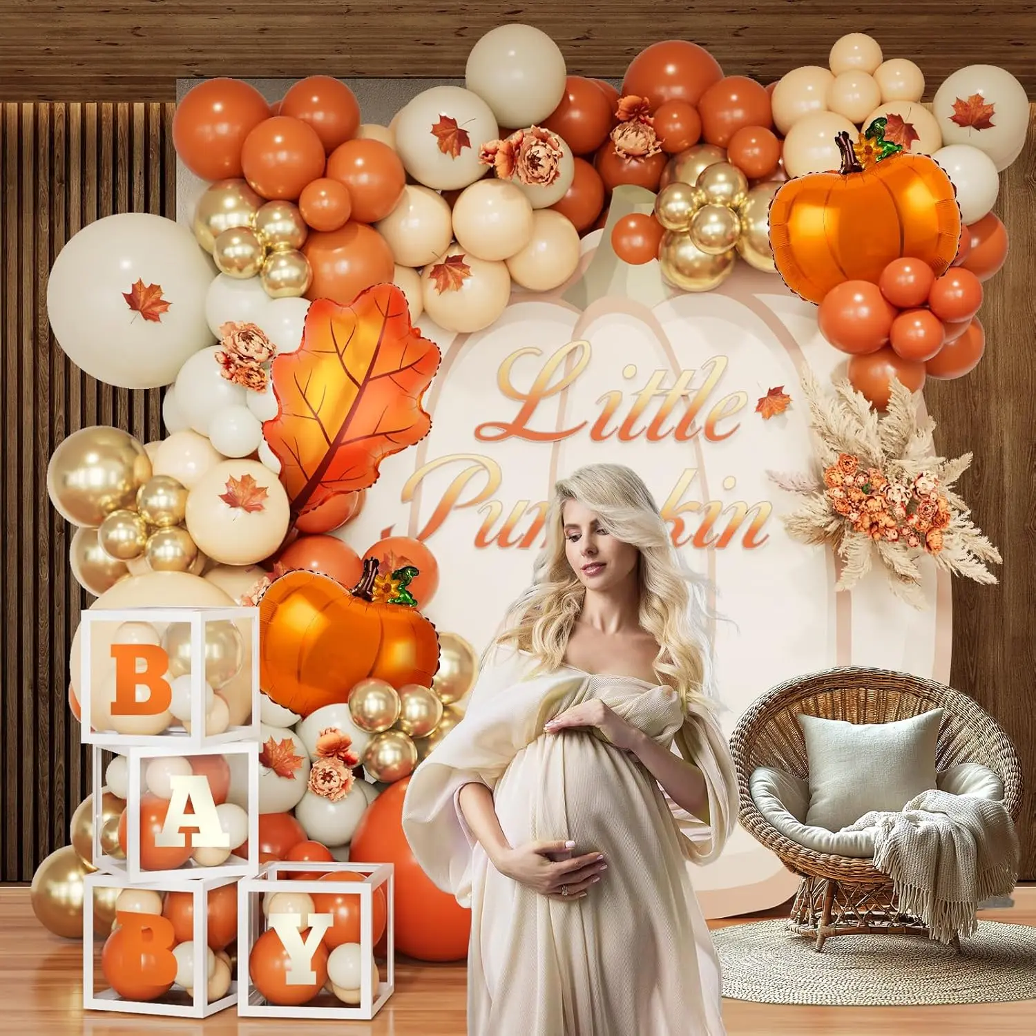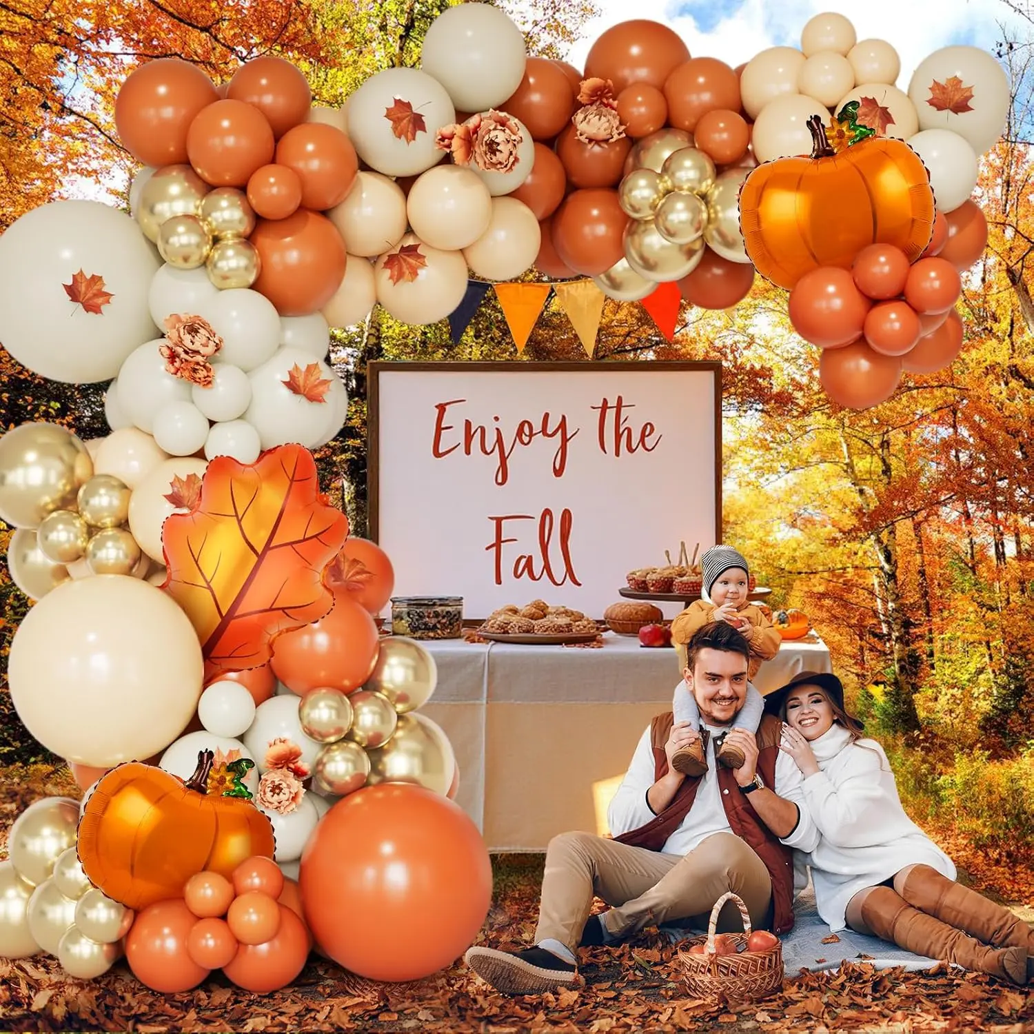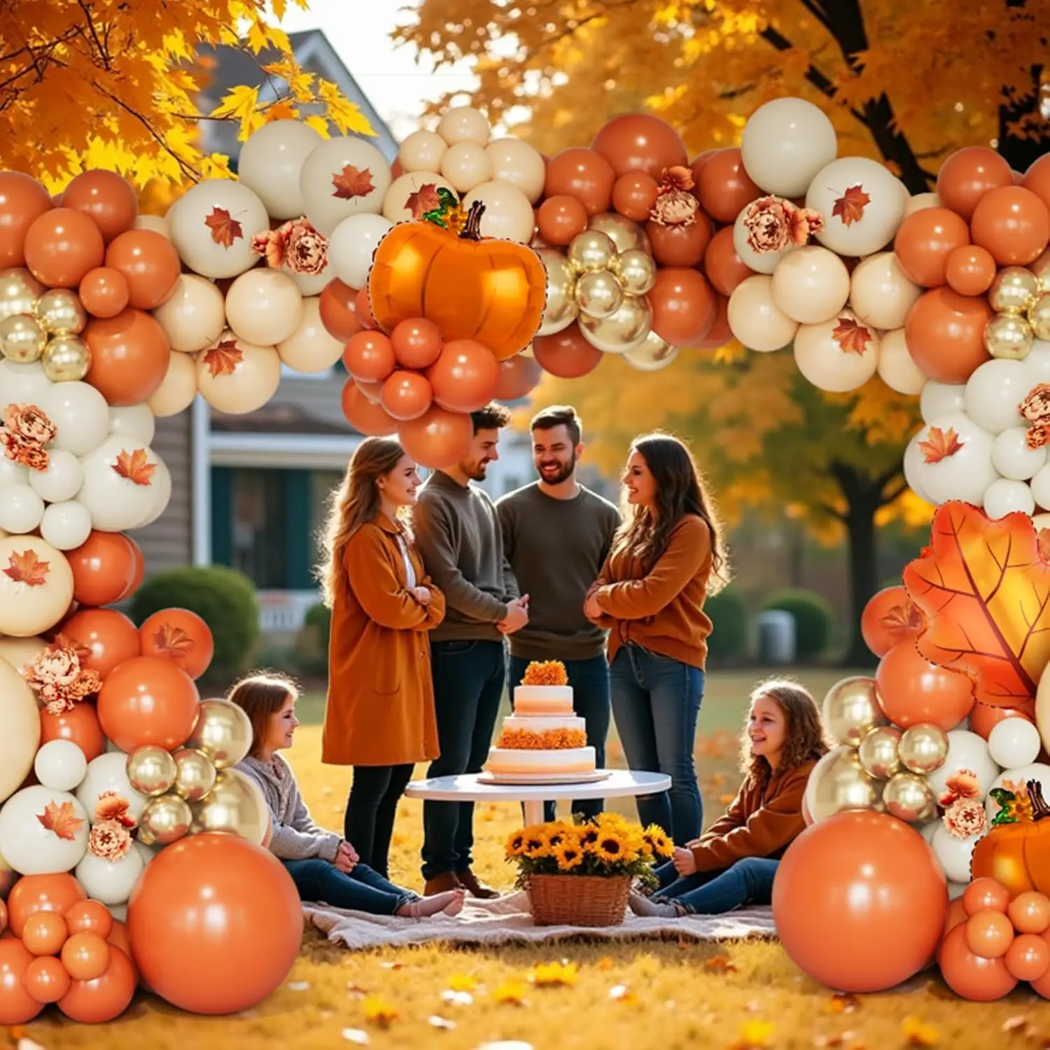 Thanksgiving Balloon Garland Arch Kit, 154PCS Burnt Orange Pastel Orange Sand White Gold Fall Balloons with Pumpkin and Leaf Foil Balloons for Baby Shower Birthday Fall Party Decorations
