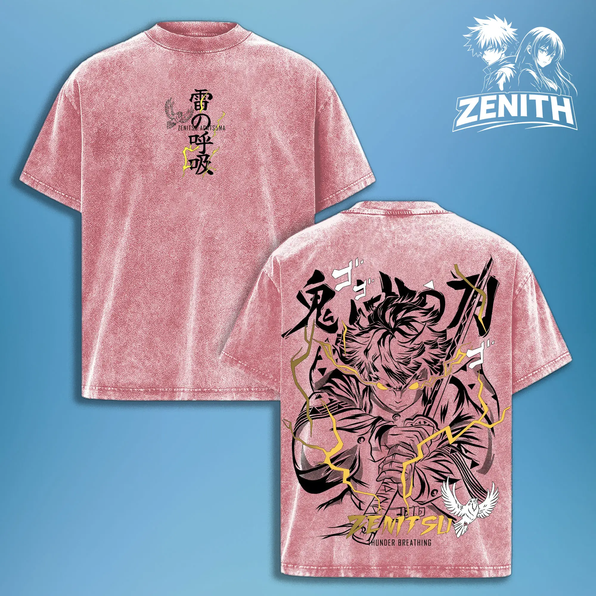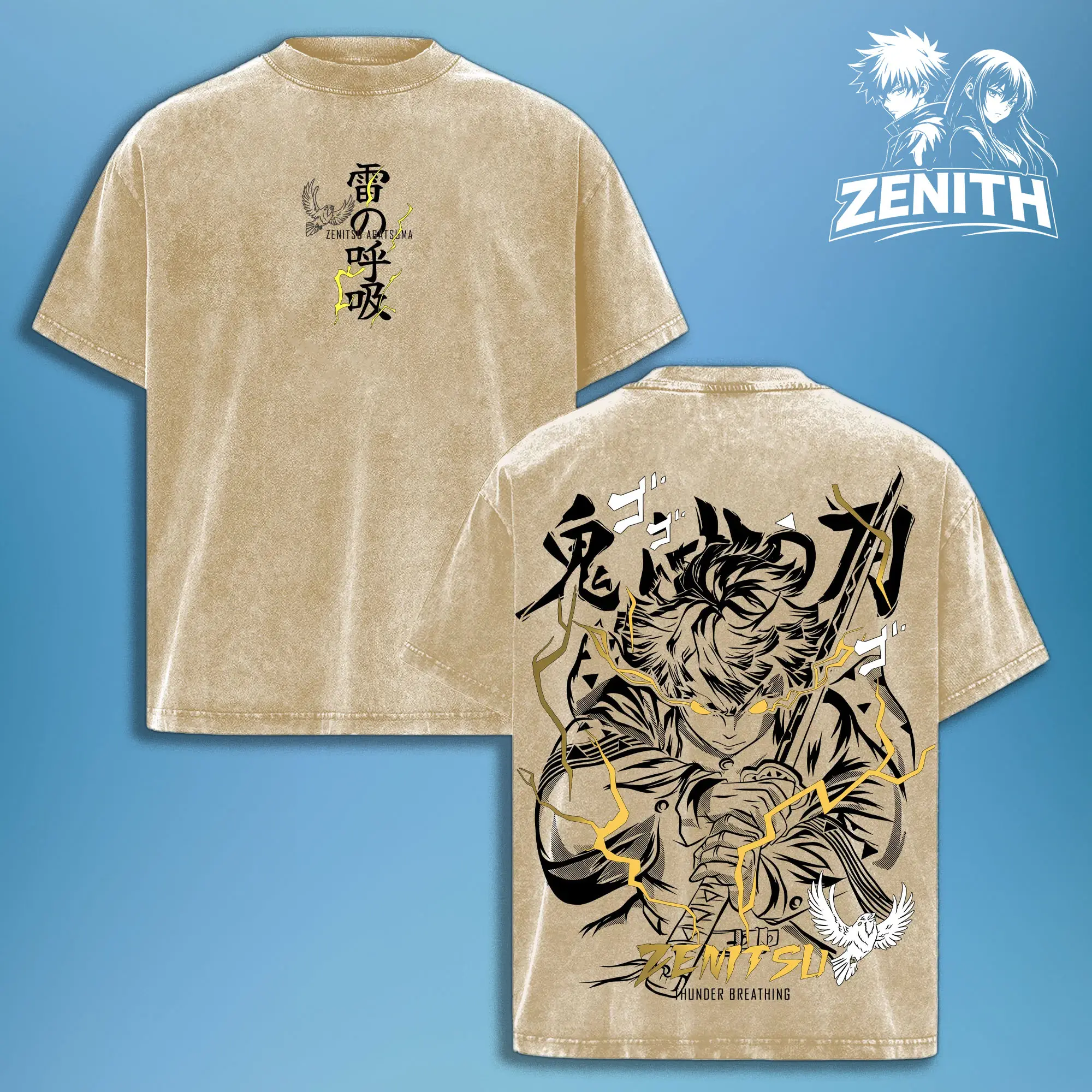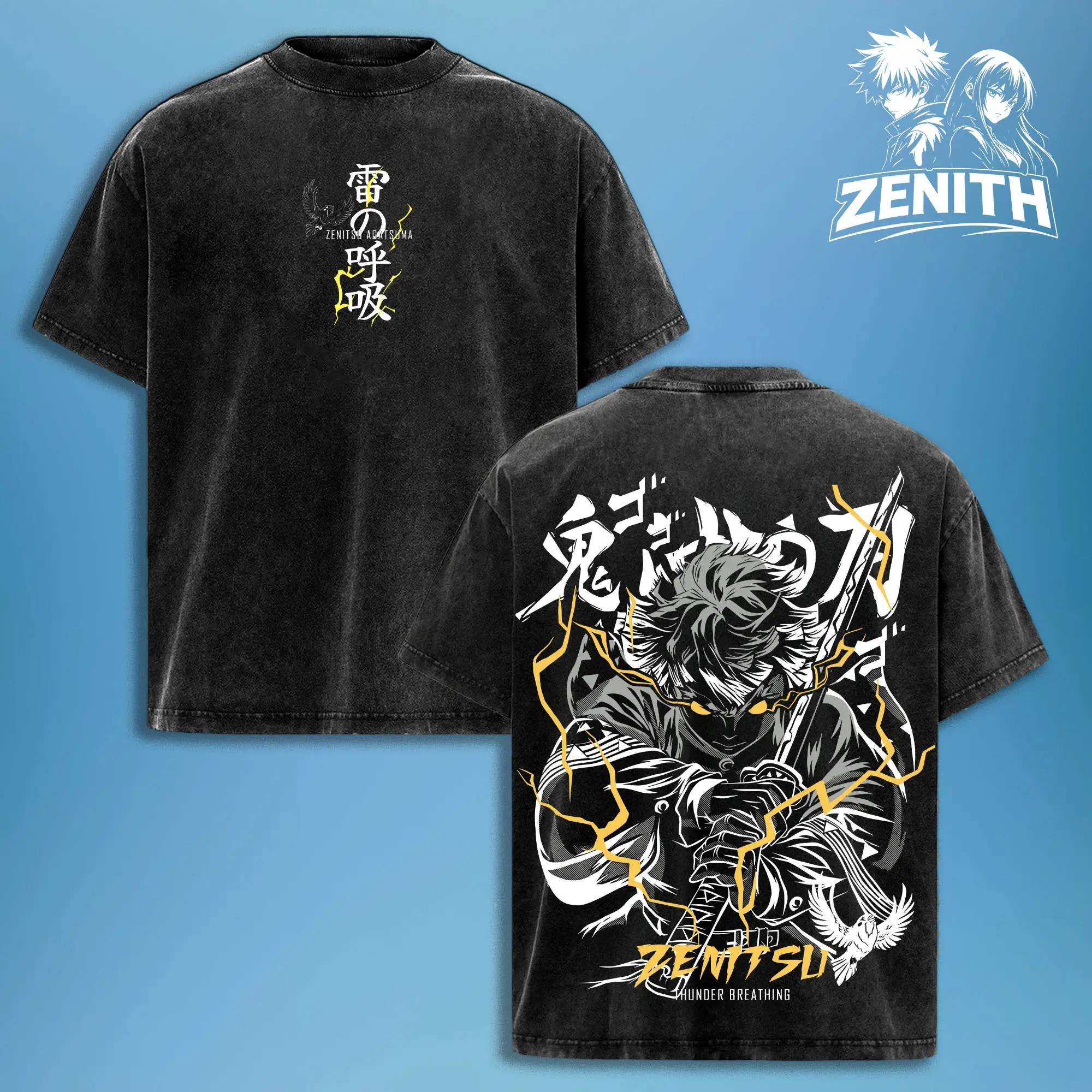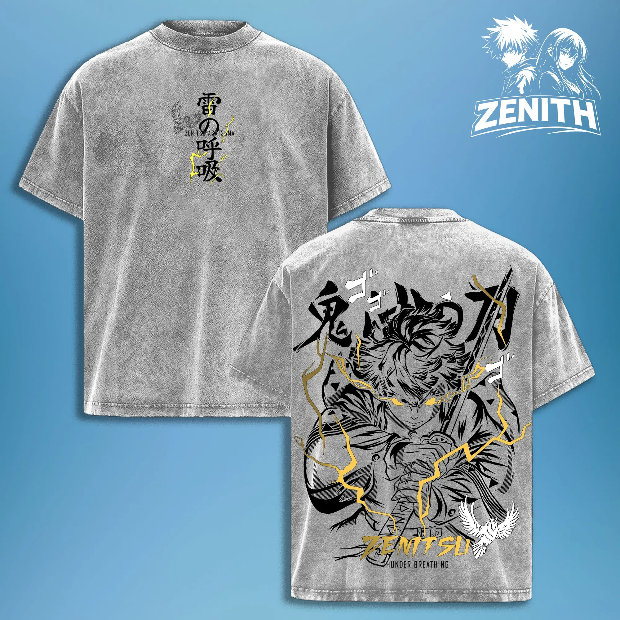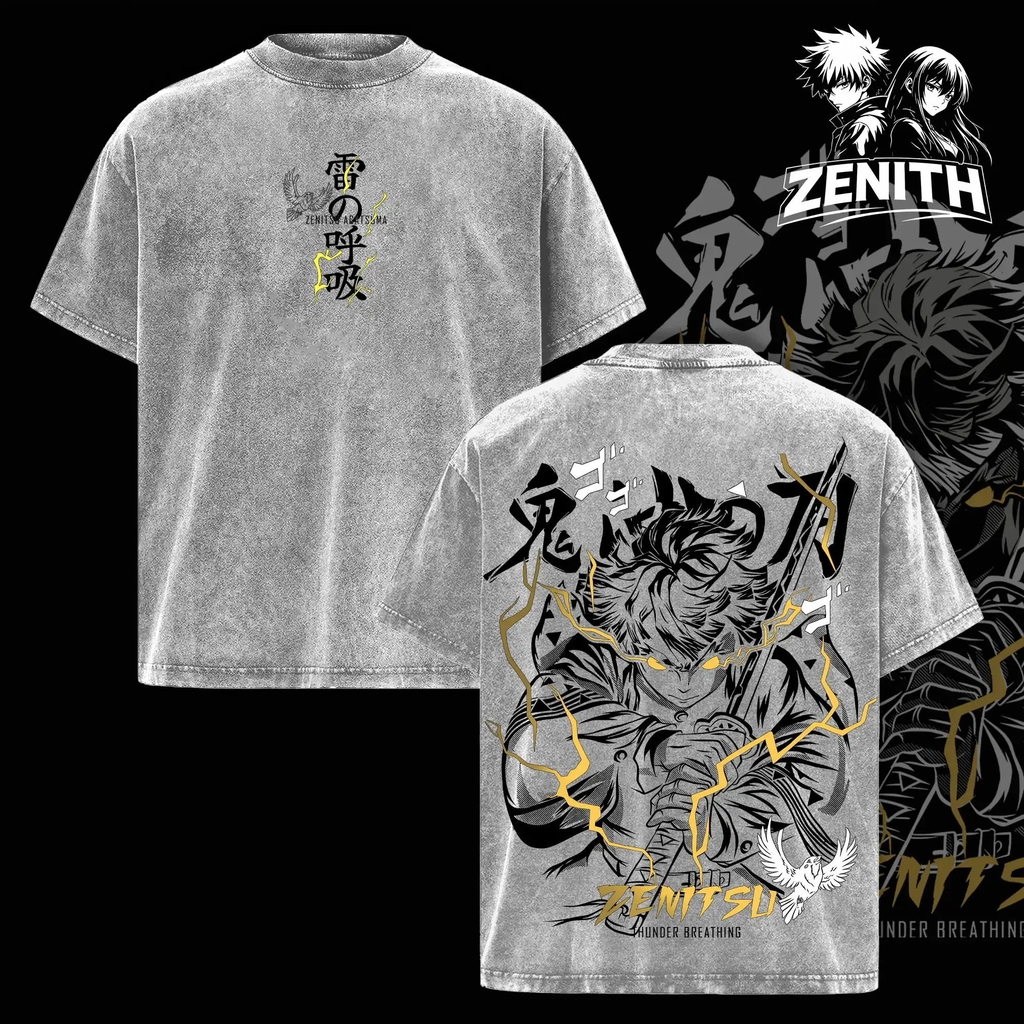 Zenitsu Agatsuma Thunder Breathing T-Shirt – Vintage Washed Oversized Demon Slayer Anime Graphic Tee, Japanese Streetwear Soft Cotton Shirt, Casual Unisex Apparel, Gift for Anime Fans