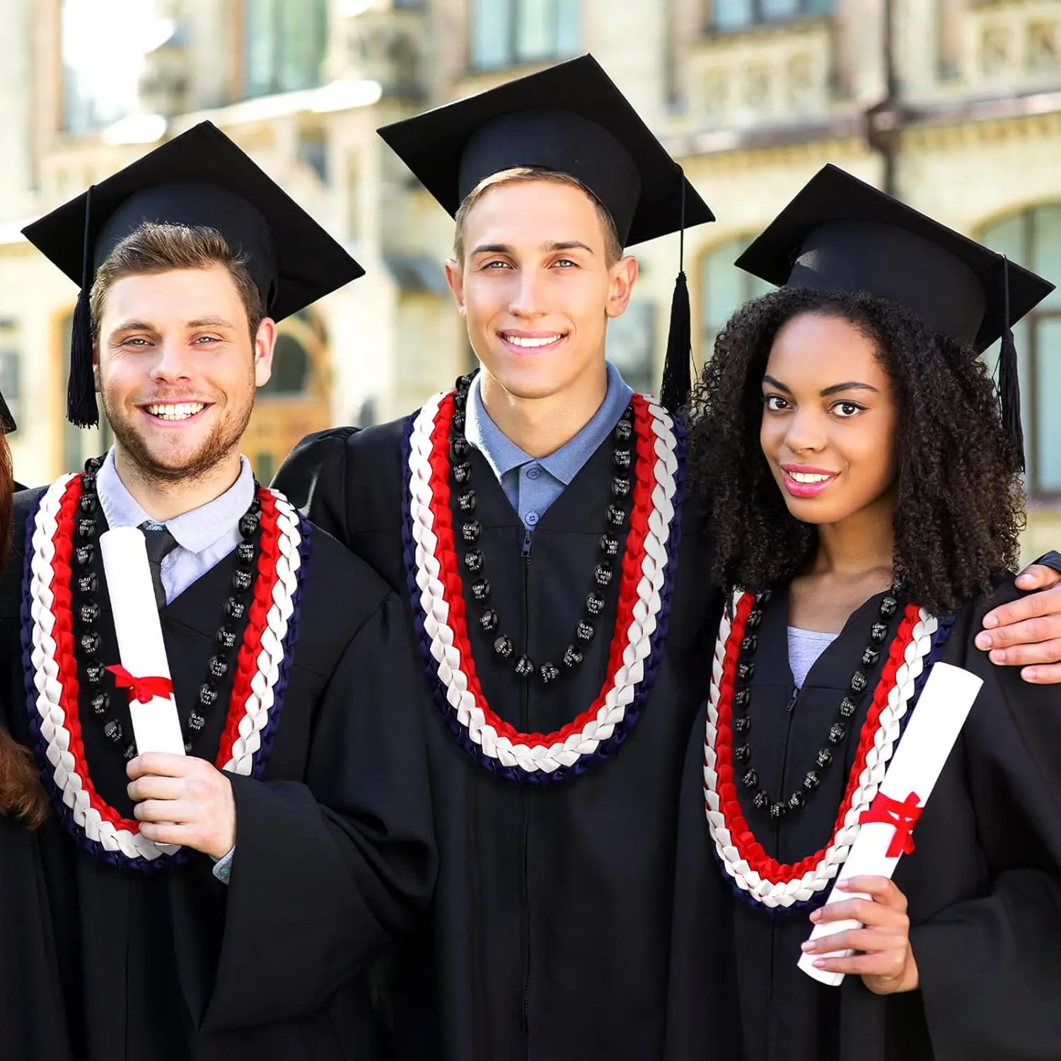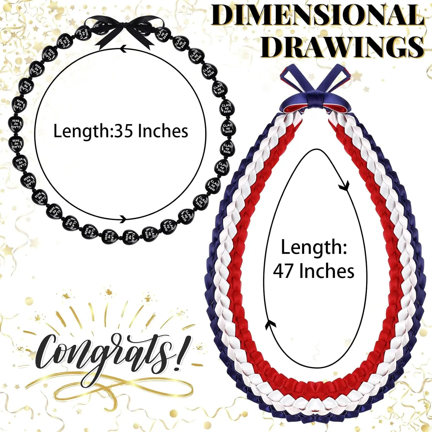 Class of 2026 Graduation Leis Set: you will receive 1 piece graduation braided ribbon lei and 1 piece kukui nut lei necklace, classic red, navy blue, and white color matching, sufficient to wear, share and commemorate, ideal for 2026 graduation season celebrationsMeaningful Graduation Gift: designed for graduates, these graduation leis express blessing, pride and best wishes for a bright futureSuitable for students, family, friends and graduates to mark this important milestoneAdjustable & Comfortable Fit: kukui nut lei approx.35 inches/89 cmBraided ribbon lei for graduation approx.47 inches/120 cm with adjustable tie closure, easy to wear and customize length for most adults and teens, no tightness or discomfortReliable Material & Elegant Look: kukui nut lei made of quality acrylicGraduation ribbon lei made of soft polyester, lightweight, durable and not easy to breakClassic red, navy blue, and white design adds elegance and ceremonial sense for graduation photosWide Application: ideal for graduation ceremony, graduation party, photo props, Hawaiian themed events, beach activities, bohemian occasions and festive celebrations, creating unforgettable graduation memories