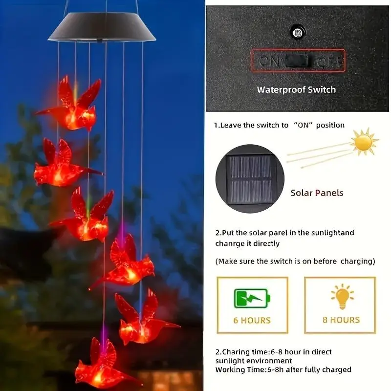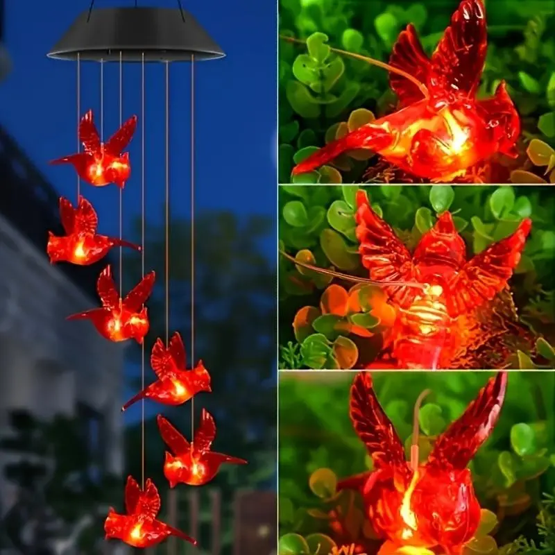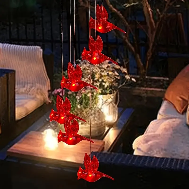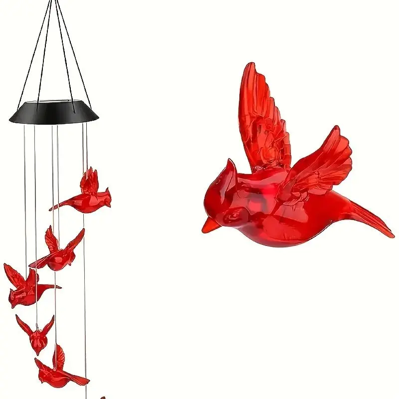Solar Cardinal Bird Bell Lights, Outdoor Garden Yard Decoration, Suitable for Christmas, Halloween, Family Party Night Garden Decoration Valentine's Day Gift