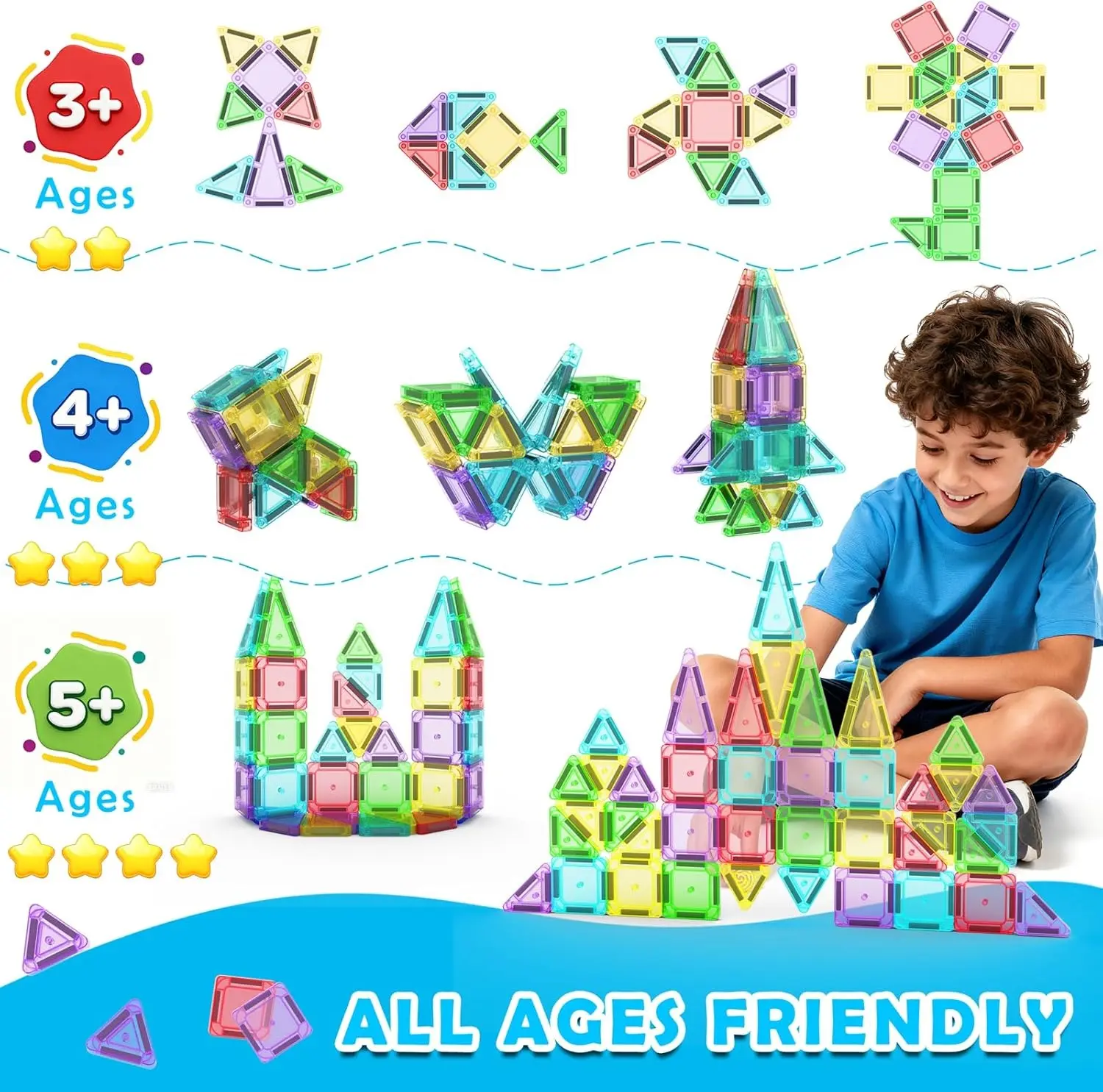 Strong Magnets for Stable Structures: Each tile has built-in edge magnets for secure connections and easy stacking. Build flat designs or 3D structures that hold firmly together—even when flipped—for a smooth and satisfying play experience