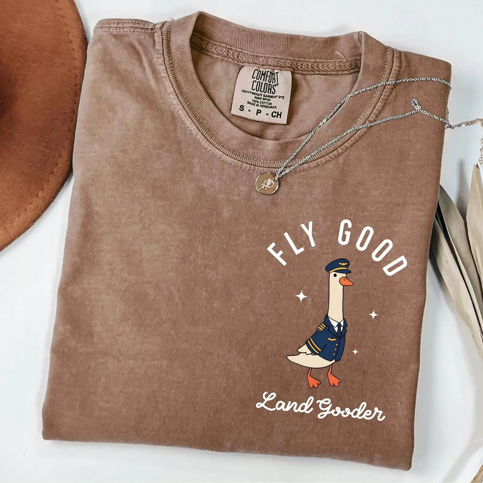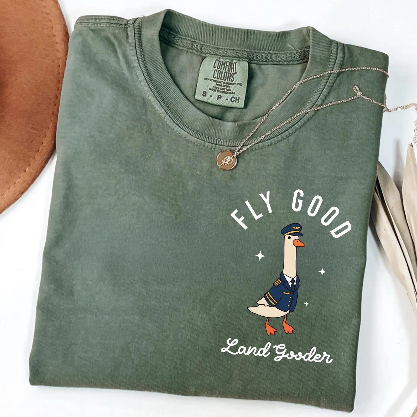 Silly Goose Pilot Shirt - Fly Good Land Gooder Tee, Pilot Aviators Gift, Airplane Lover Shirt, Flight Crew Pilot Travel Tee