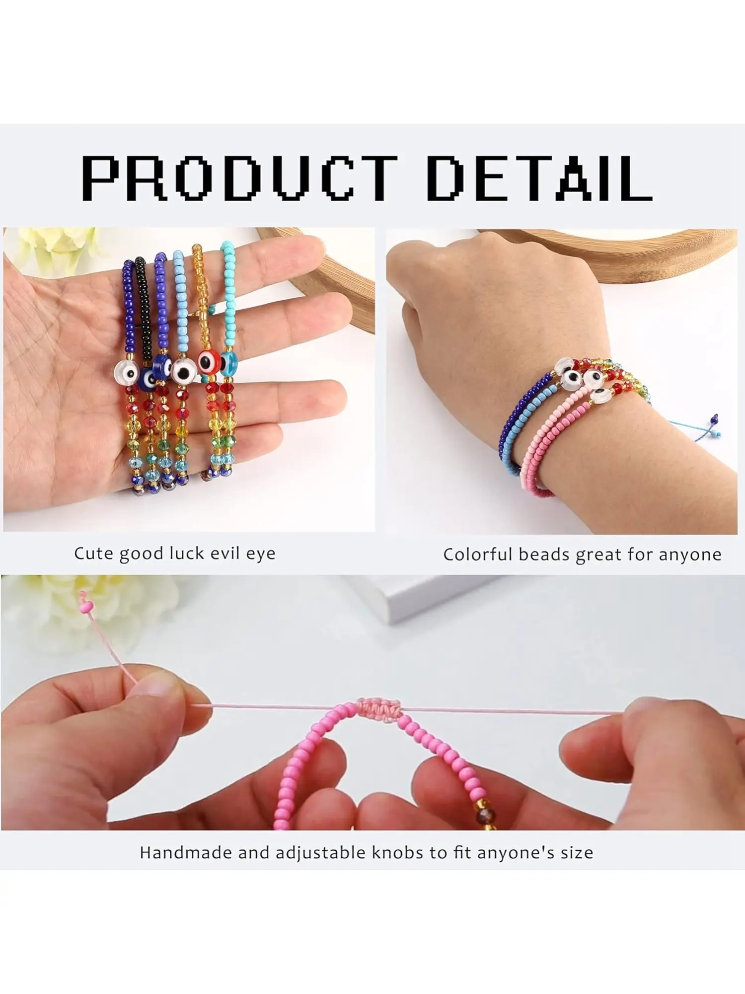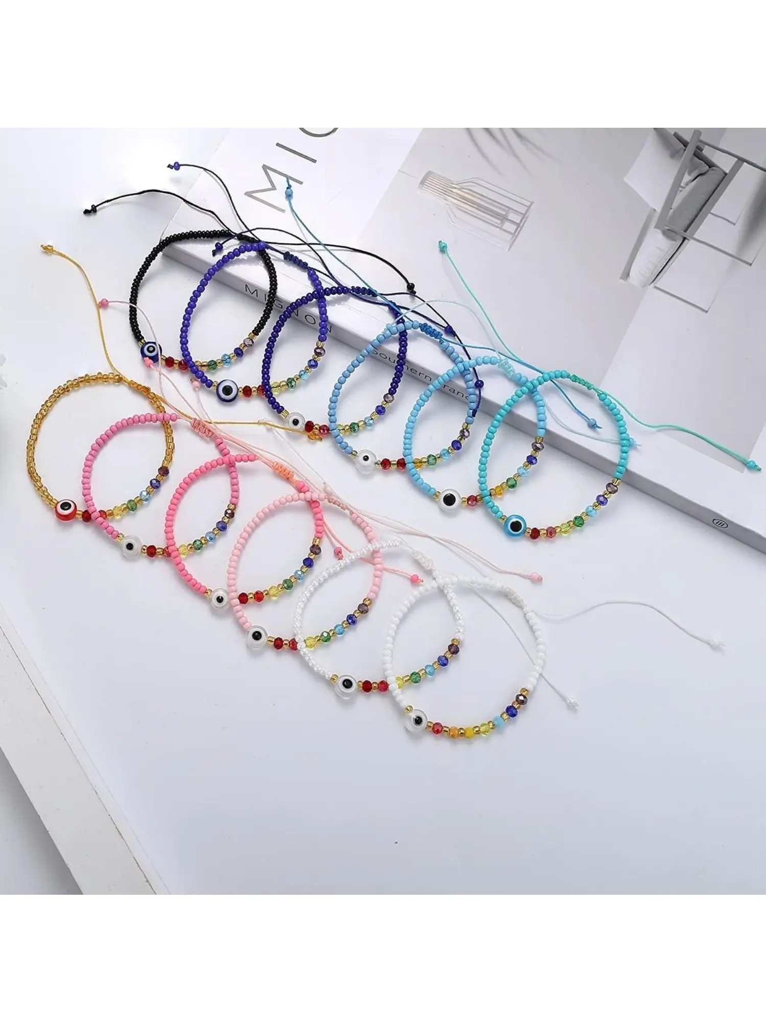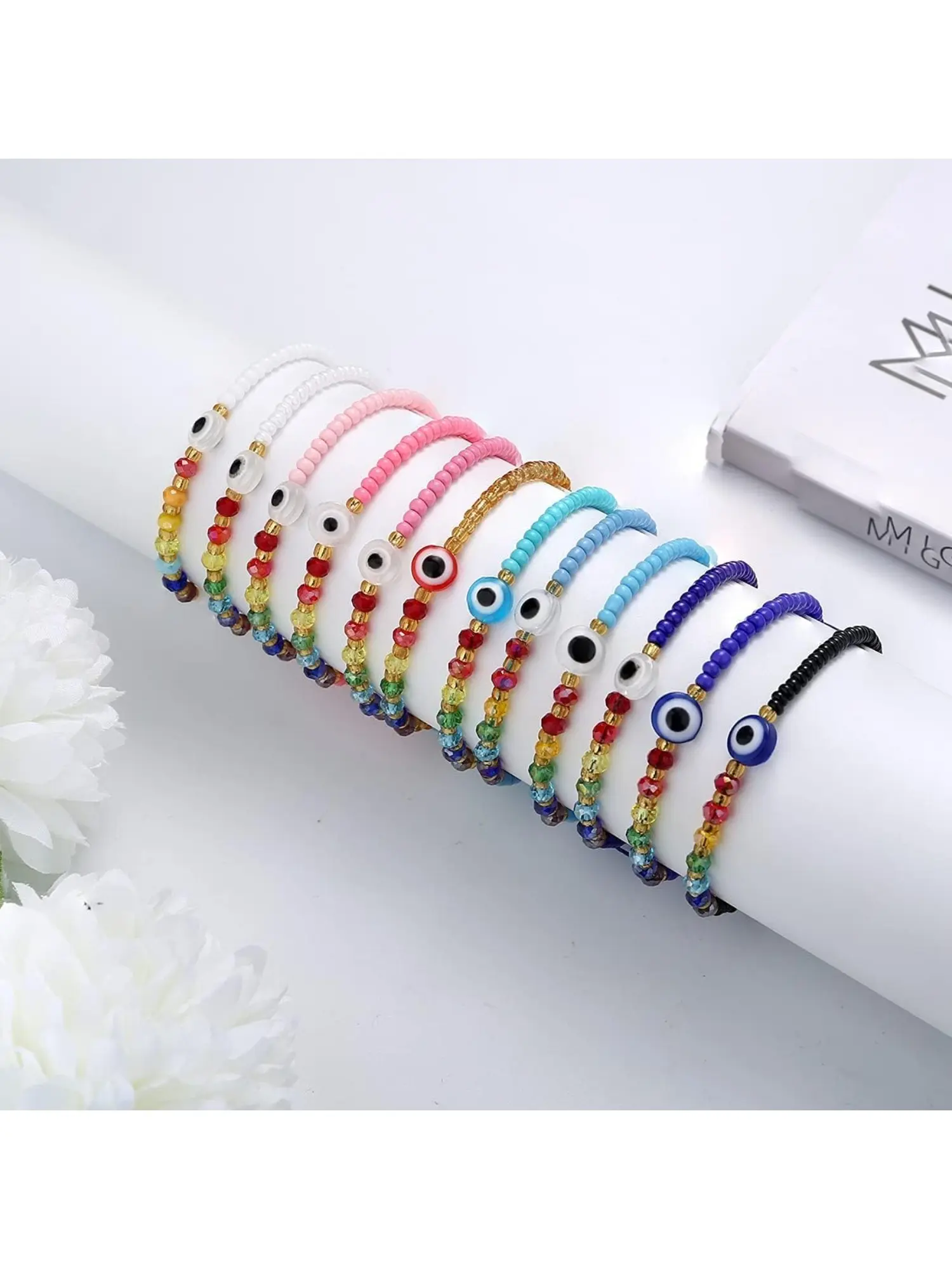 12Pcs Colorful Beaded Evil Eye Bracelets for Women Men Handmade Black Red Adjustable Ojo Bracelets Good Luck Protection Bracelet Jewelry Gift for Friends Family