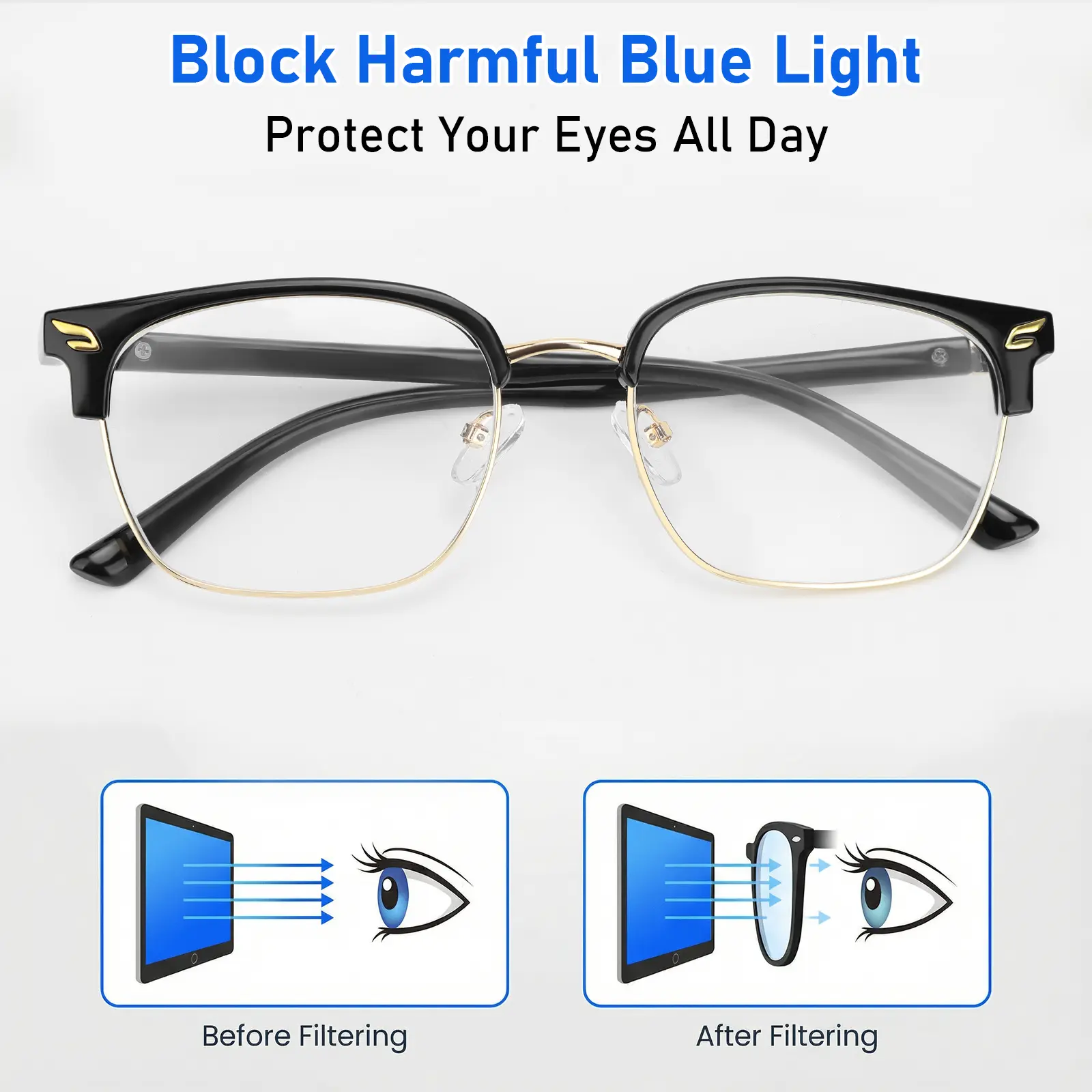 [Blue Light Blocking] These glasses effectively filter harmful blue light emitted from digital screens, helping reduce eye strain and supporting healthier sleep patterns.