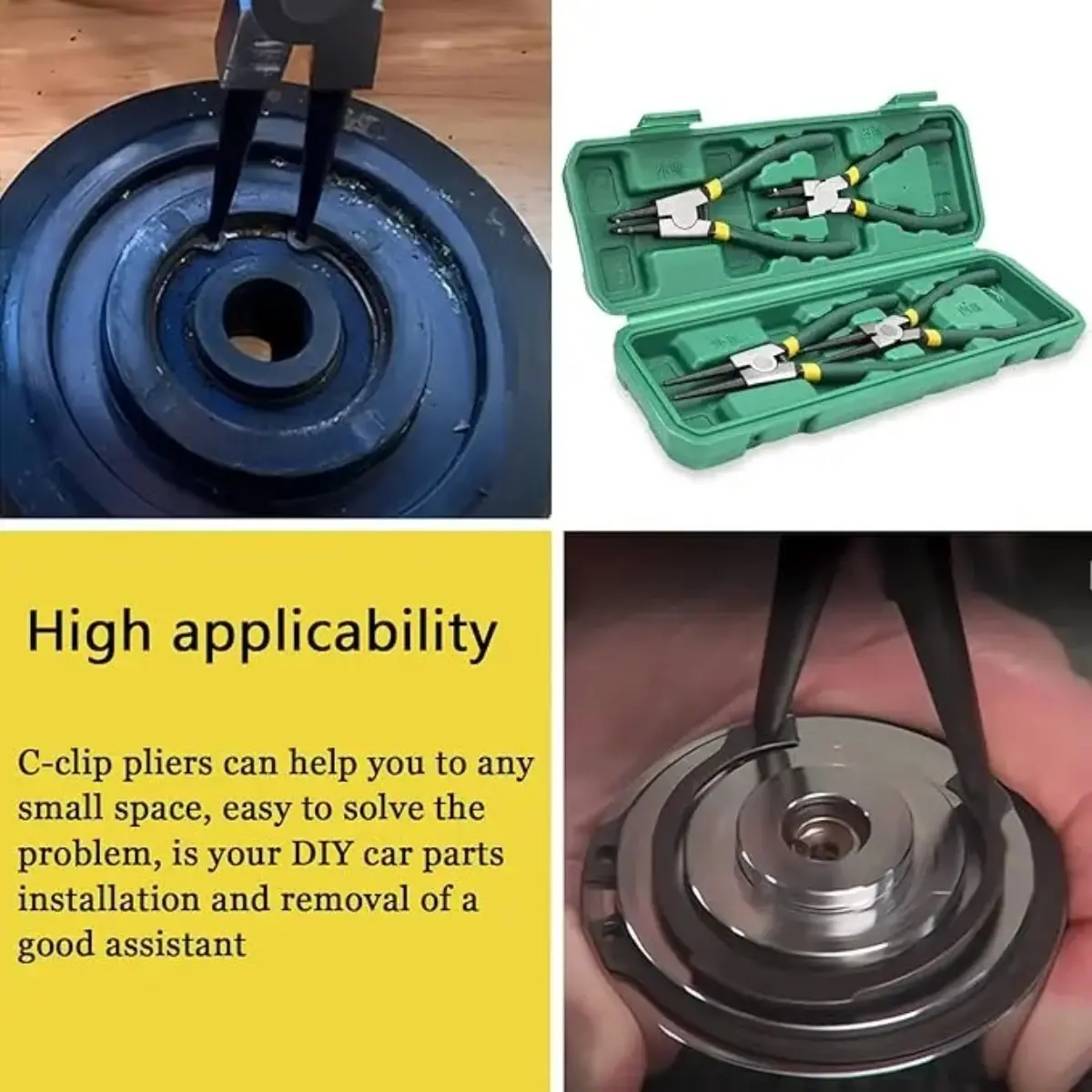 Portable 4Pc Pliers Set Internal & External Bending & Straight Heavy-Duty Disassembly Tool with Storage Box Metal Construction Retaining Ring Circlip Snap Hardware Hand Tools Kit Removal Ratchet car