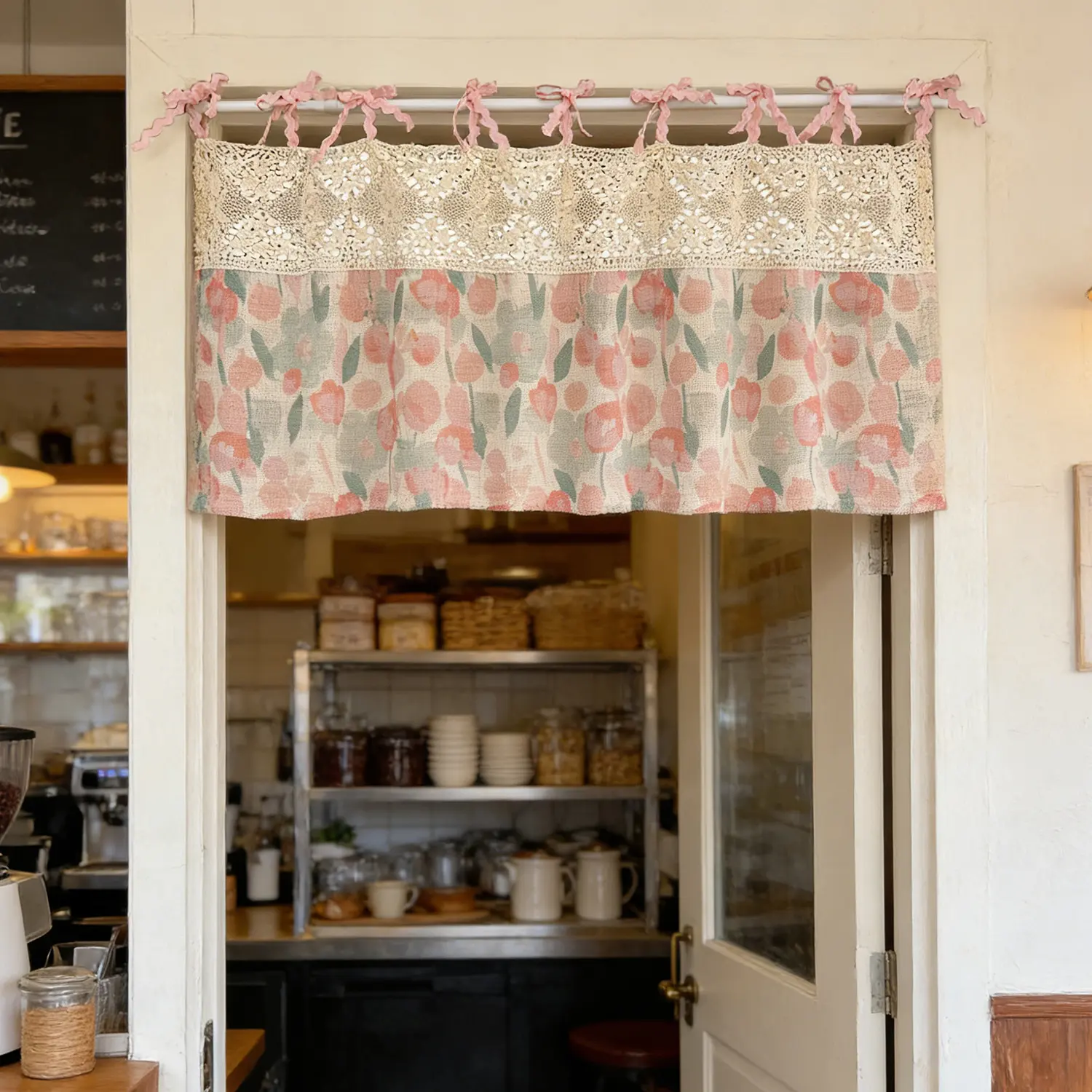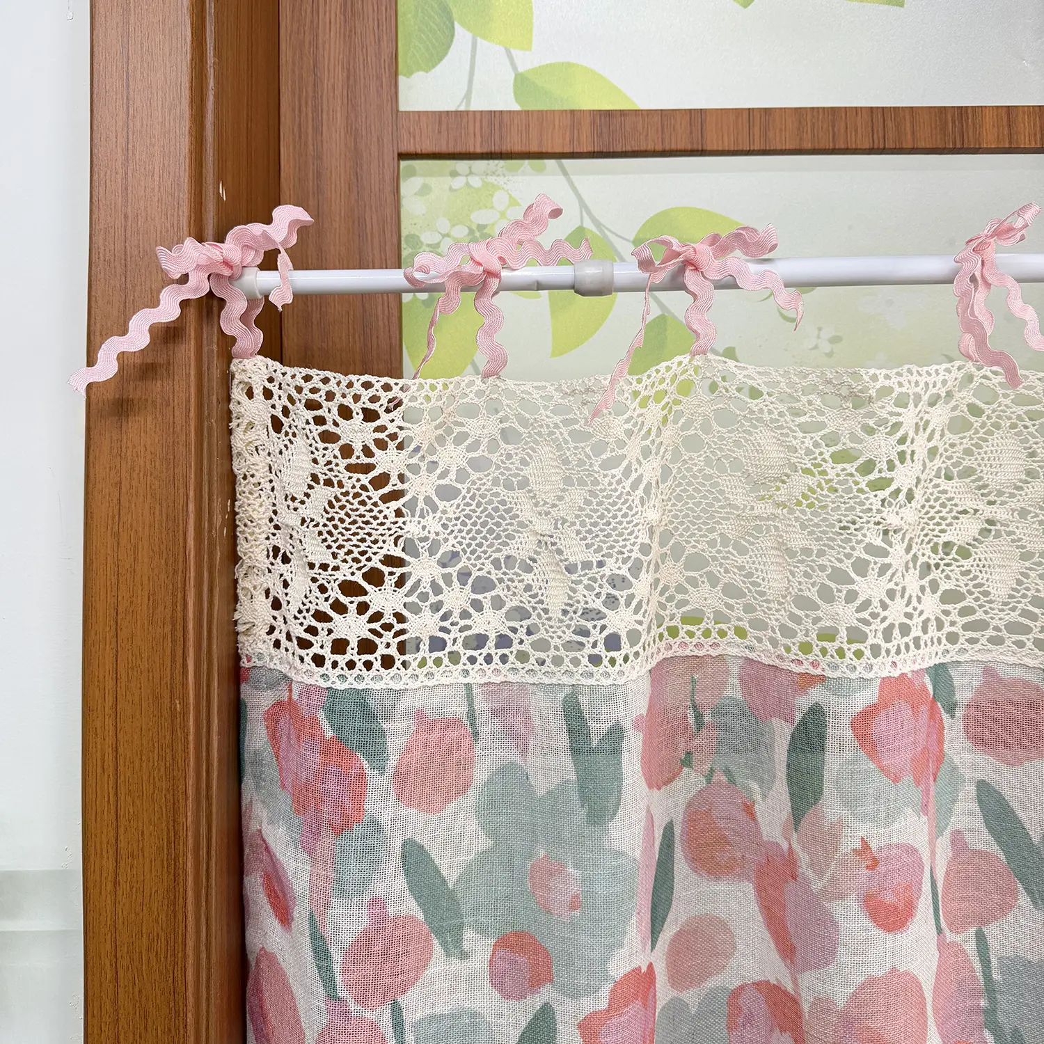 ·TOP STYLE:The pink tulips valance curtain is featuring a chic tie top, these half curtains accommodate most cafe curtain rods