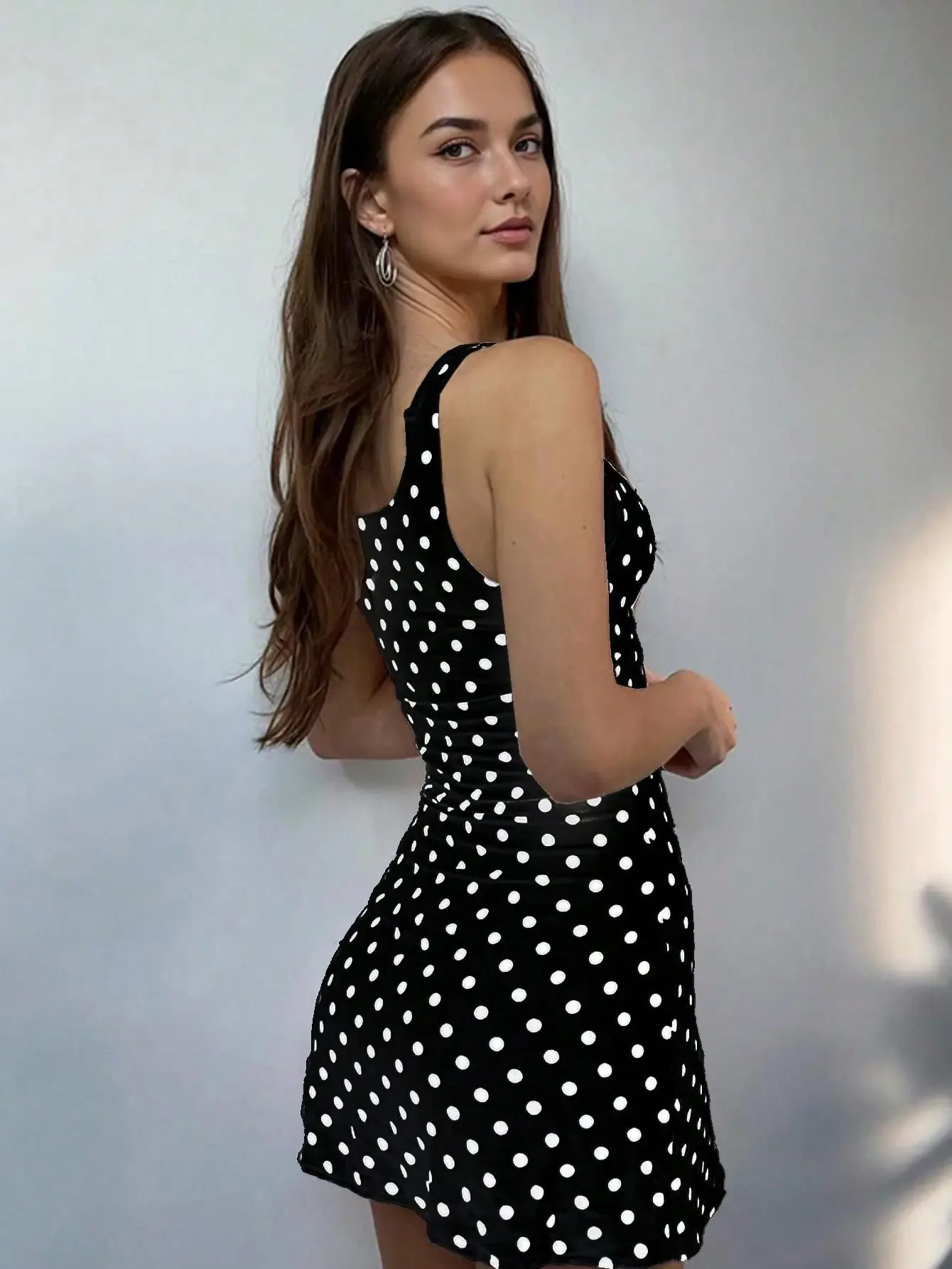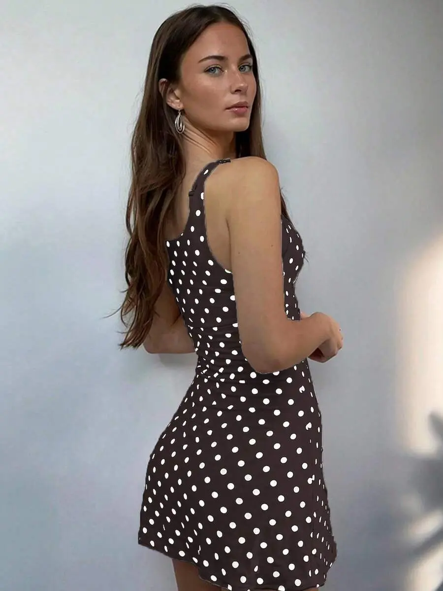 ARTYOTI Polka Dot Print Cut-Out Tie-Up Fashion Mini Dress, Elegant Vacation Retro Style Music Festival, Fitted Bustier Bodycon Short Dress, For Summer Party
