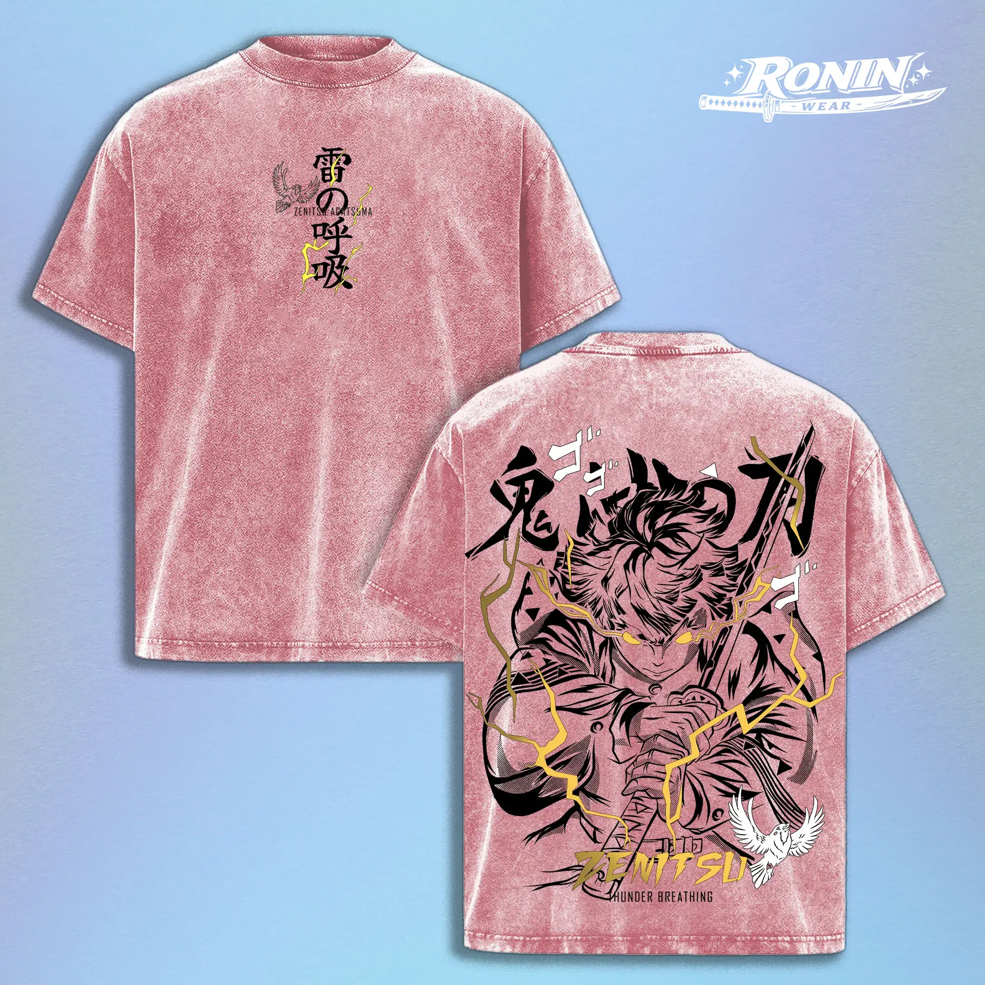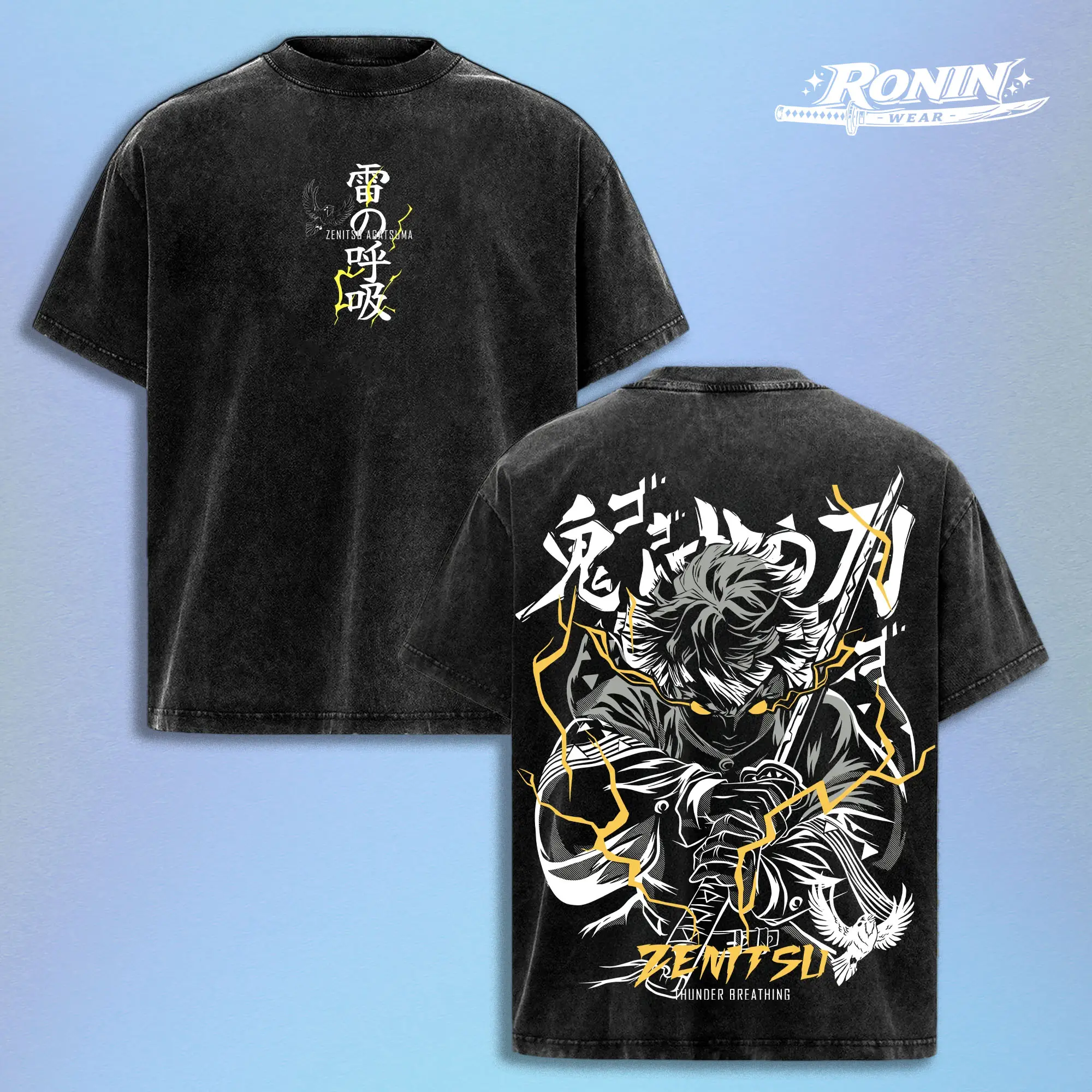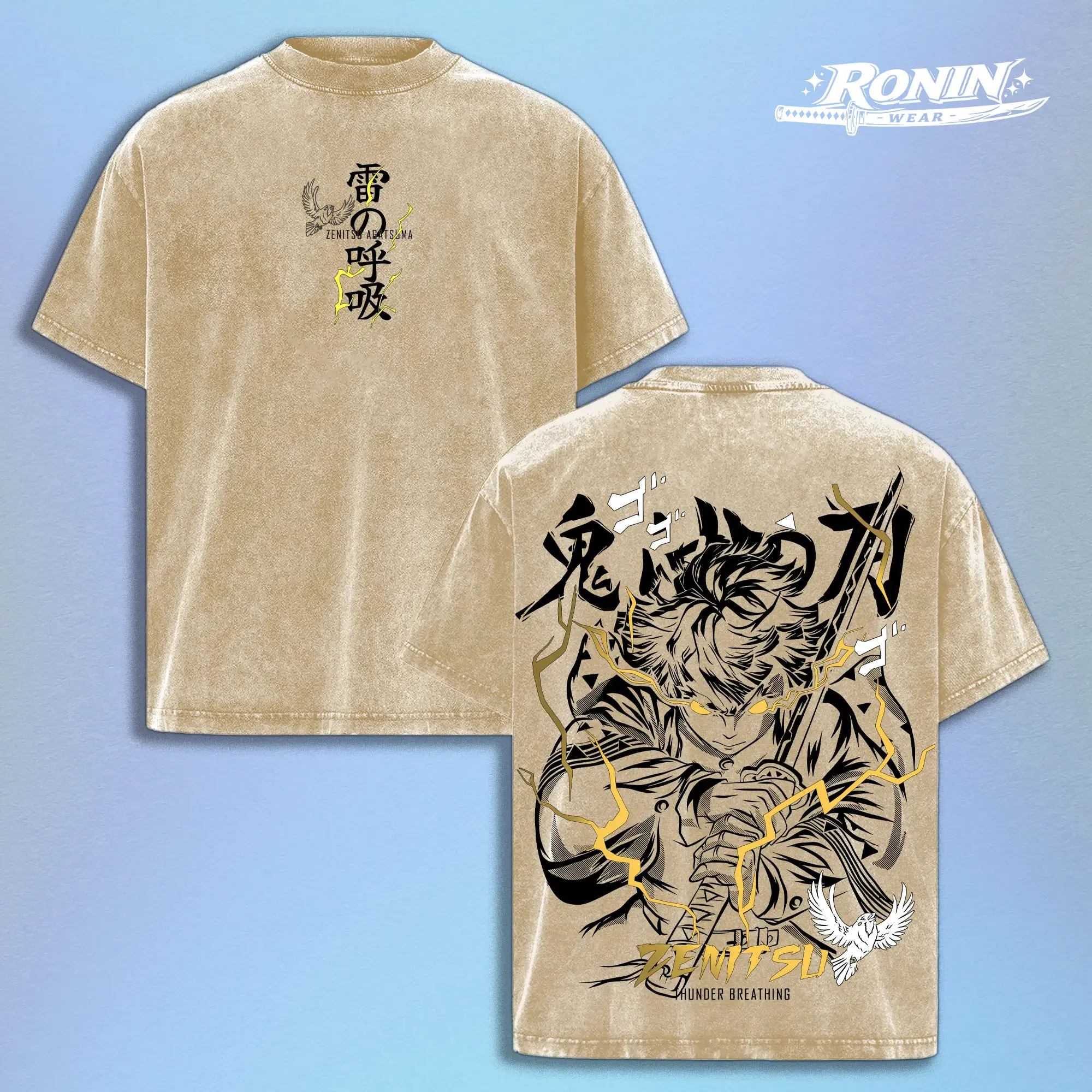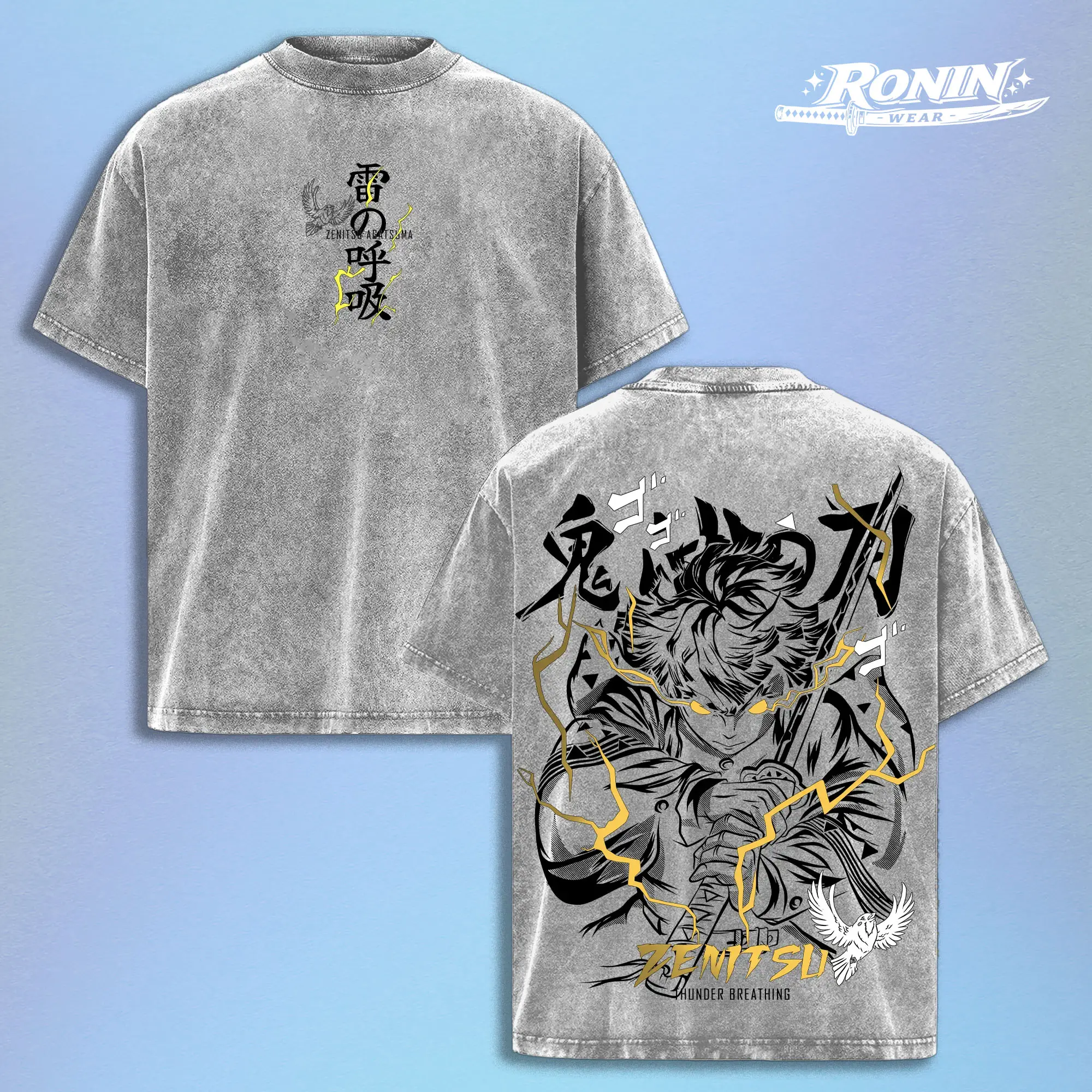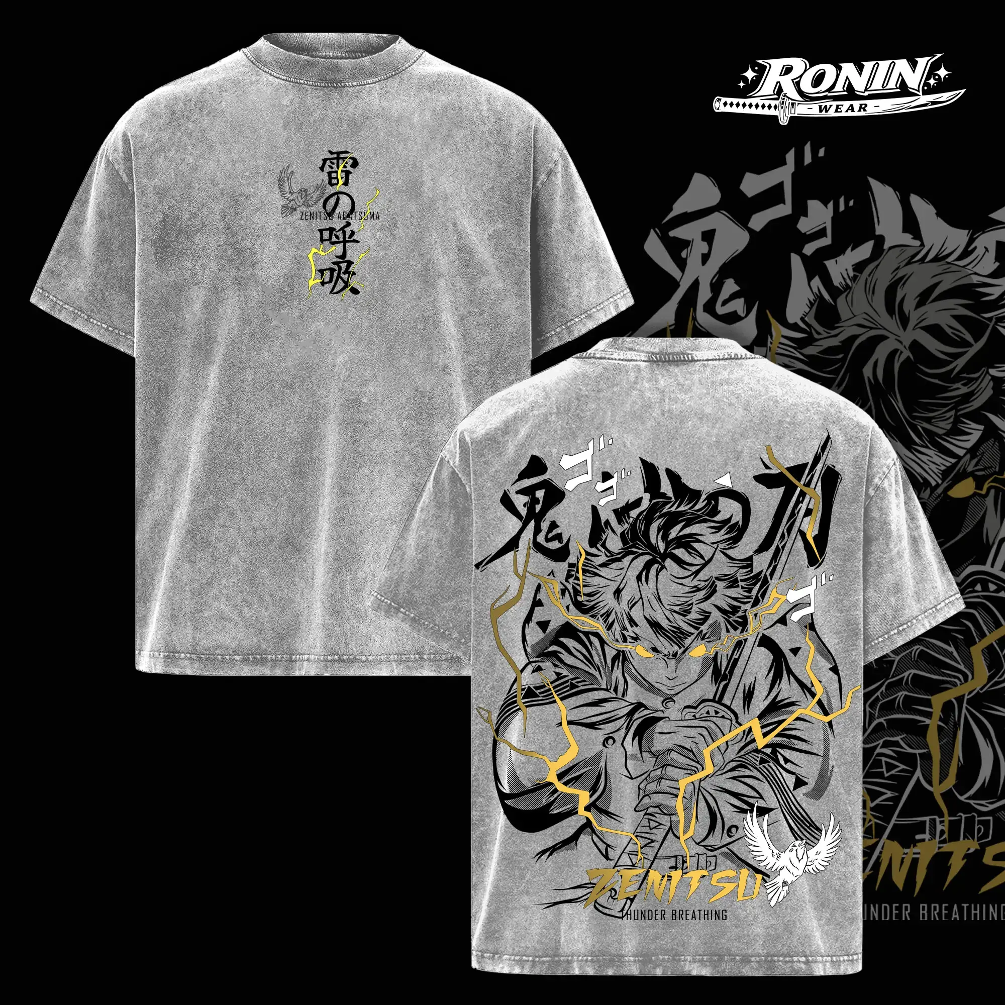 Zenitsu Agatsuma Thunder Breathing T-Shirt – Vintage Washed Oversized Demon Slayer Anime Graphic Tee, Japanese Streetwear Soft Cotton Shirt, Casual Unisex Apparel, Gift for Anime Fans