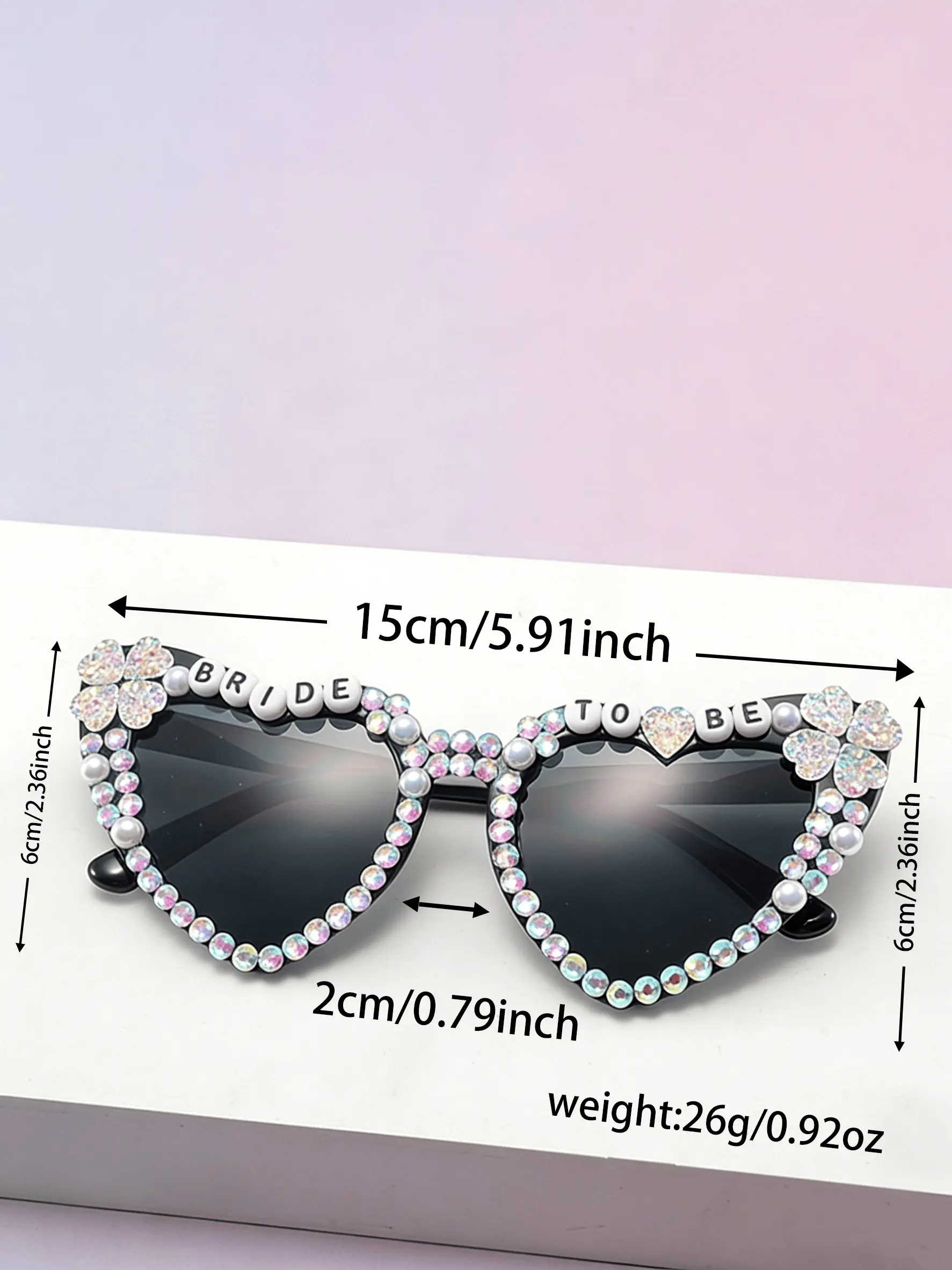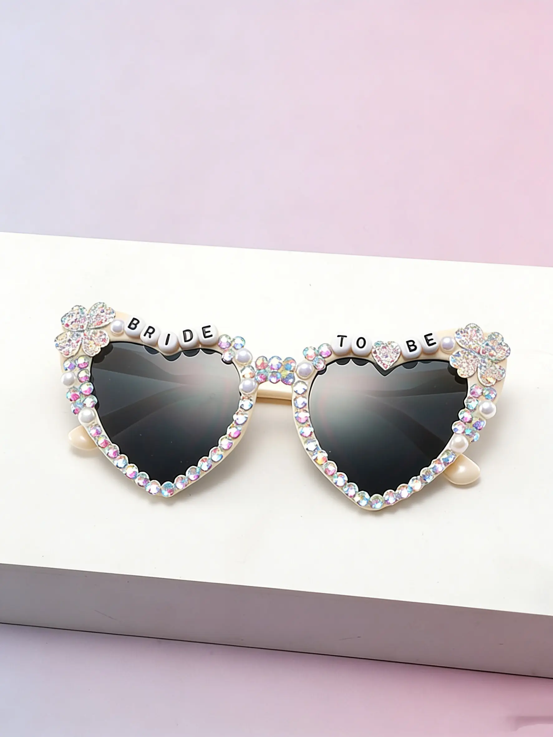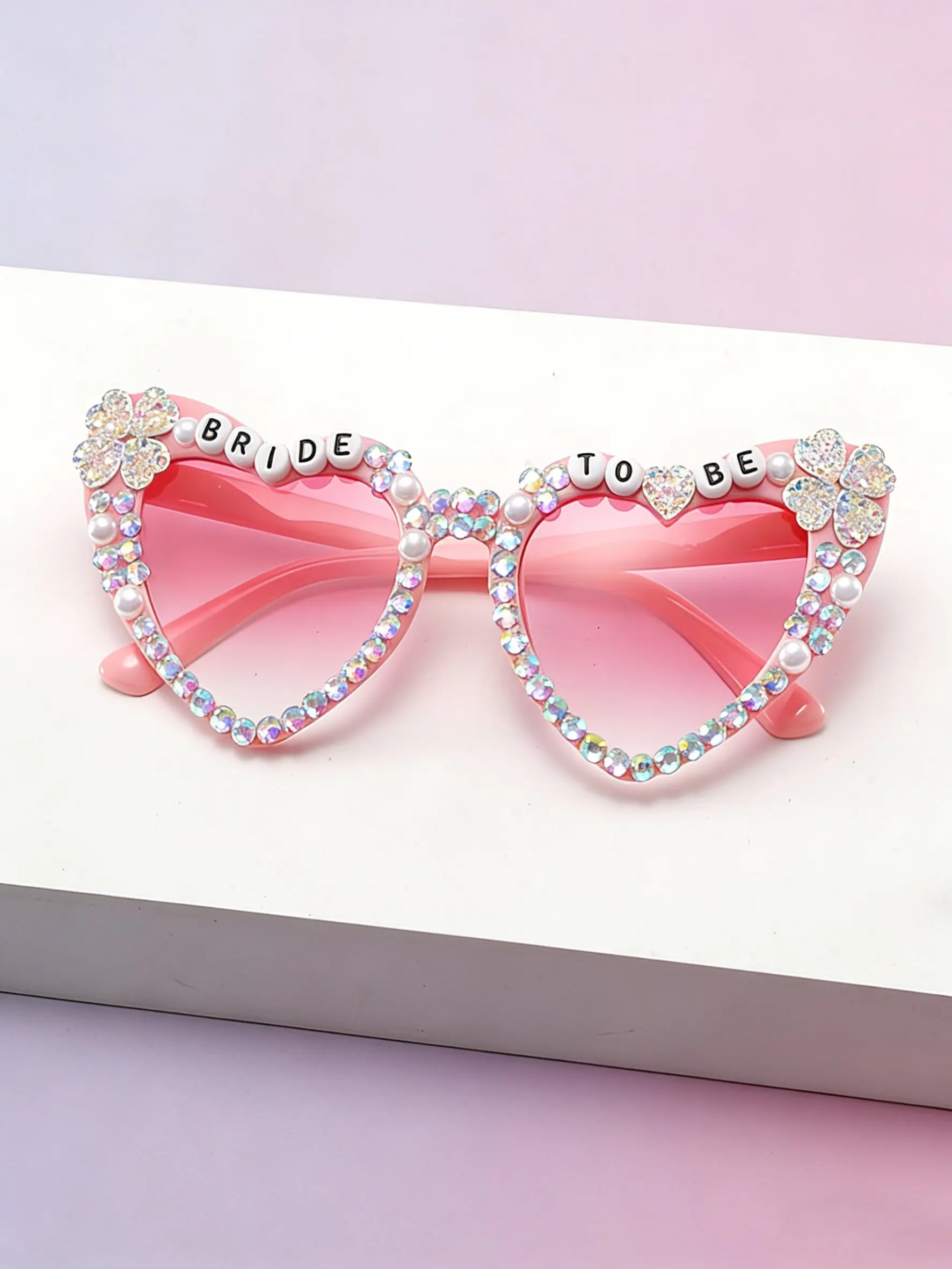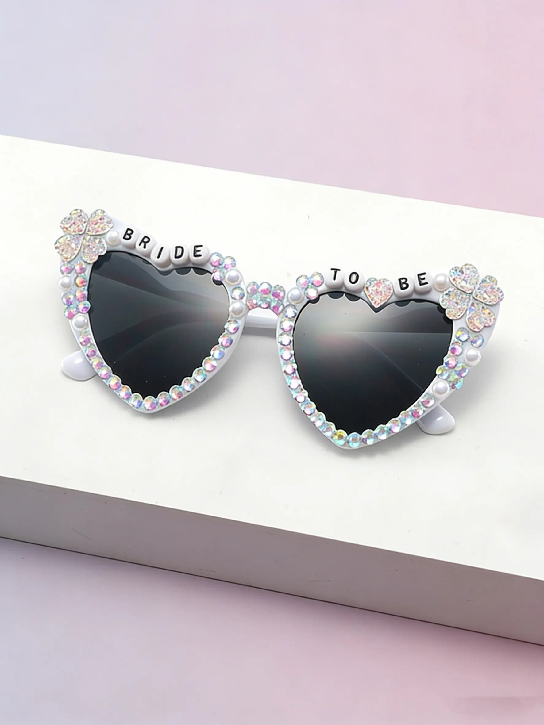 5. Bride-To-Be Full-Diamond Heart Sunglasses, Pearl Clover Decoration, Pre-Wedding Singles Party Photo Sun Glasses, Elegant Bridal Accessory