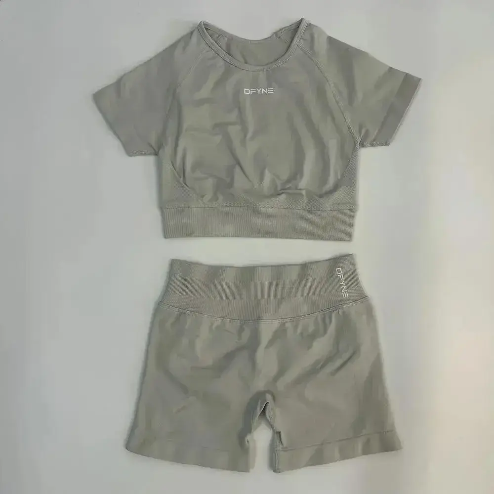 DFYNE Seamless Impact Gym Set for Women Compression Crop Top & Pleated Bum Scrunch Shorts Sculpting 2-Piece Workout Outfit for Yoga Training Athleisure Quick Dry Activewear Outdoor Sportswear Sporty Comfy Breathable