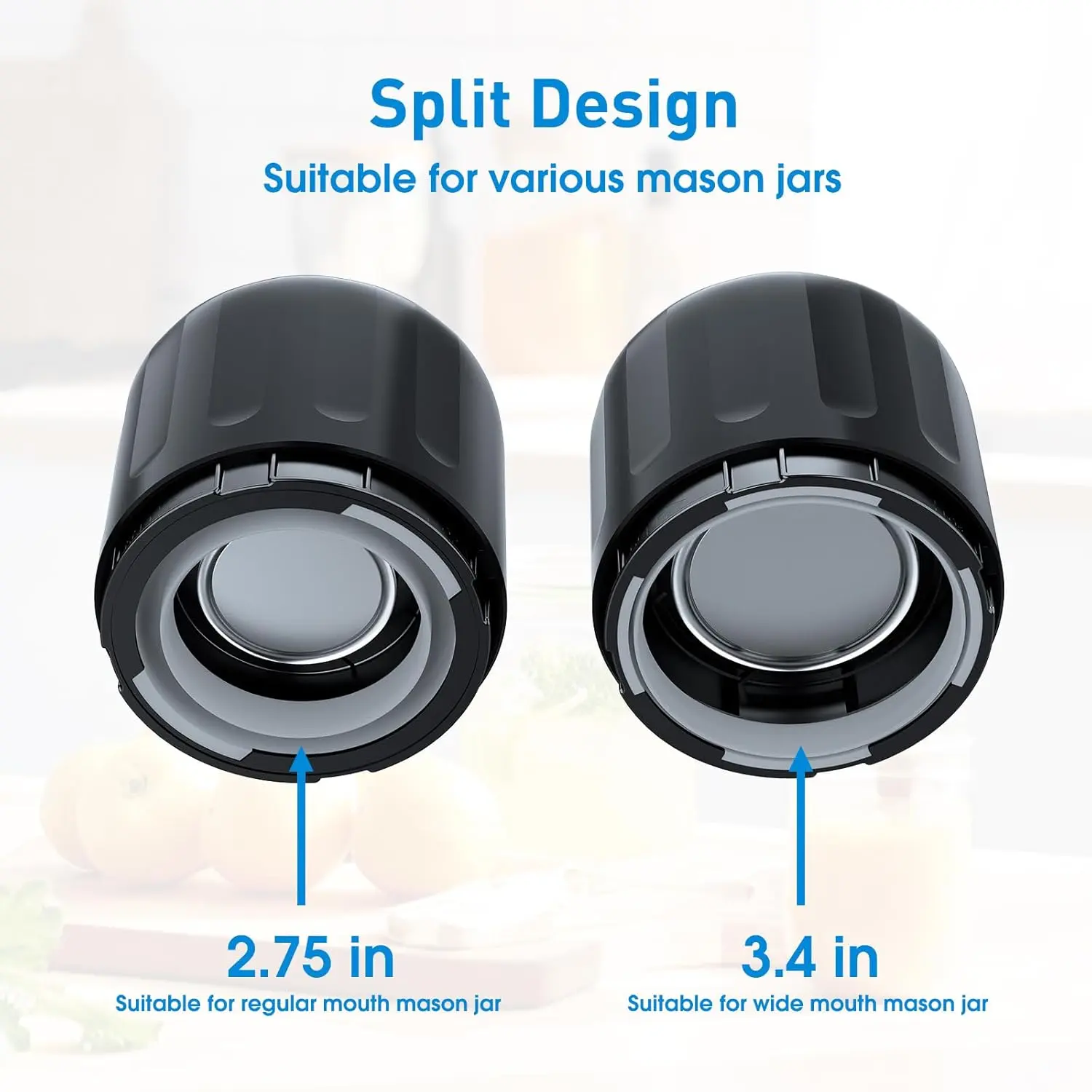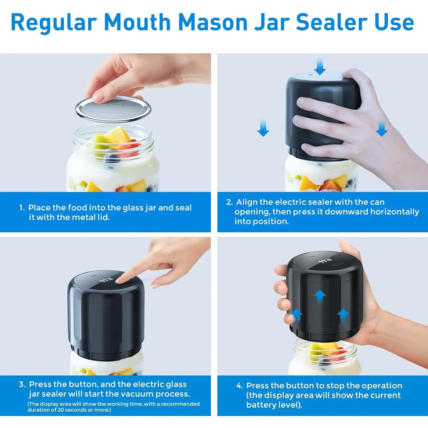 Upgraded Auto Stop Electric Mason Jar Vacuum Sealer Kit (Lids Included) for Wide & Regular Mouth Jars, Large Screen & Battery Level Display, Fully Automatic Portable Canning Food Storage Sealer