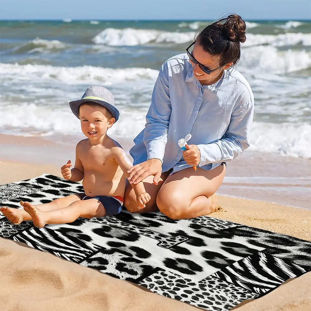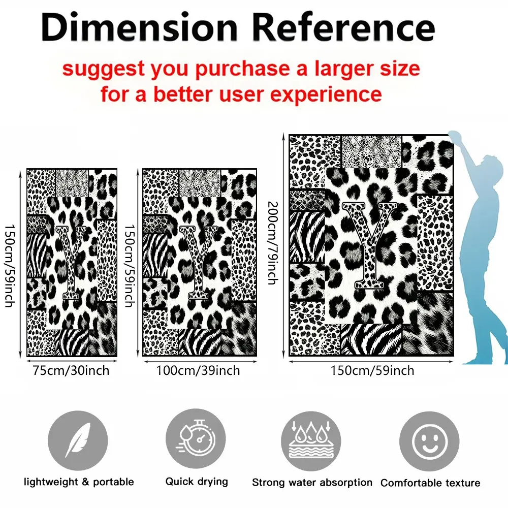 High Street Initial Leopard Print Beach Towel, Trendy Animal Print Patchwork, Quick Dry Lightweight Portable, Perfect for Trendsetters Pool Daily Use