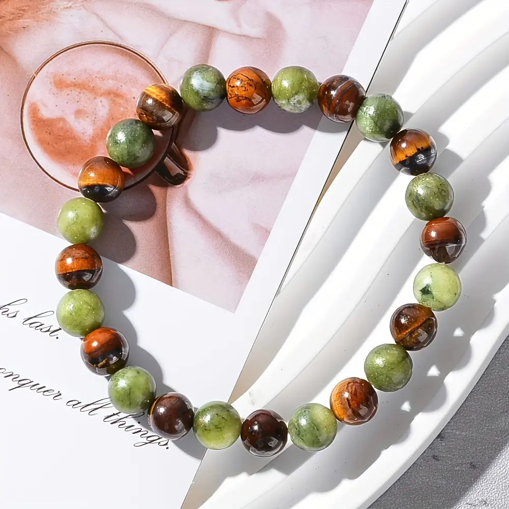 1pc Arpurraina Money Attraction Bracelet with Green Aventurine & Tiger Eye - blue friendship bracelet beaded jewelry protection bracelet encouragement gift fashion artificial bracelet of the day Colorblock Beaded Crystal Bracelet