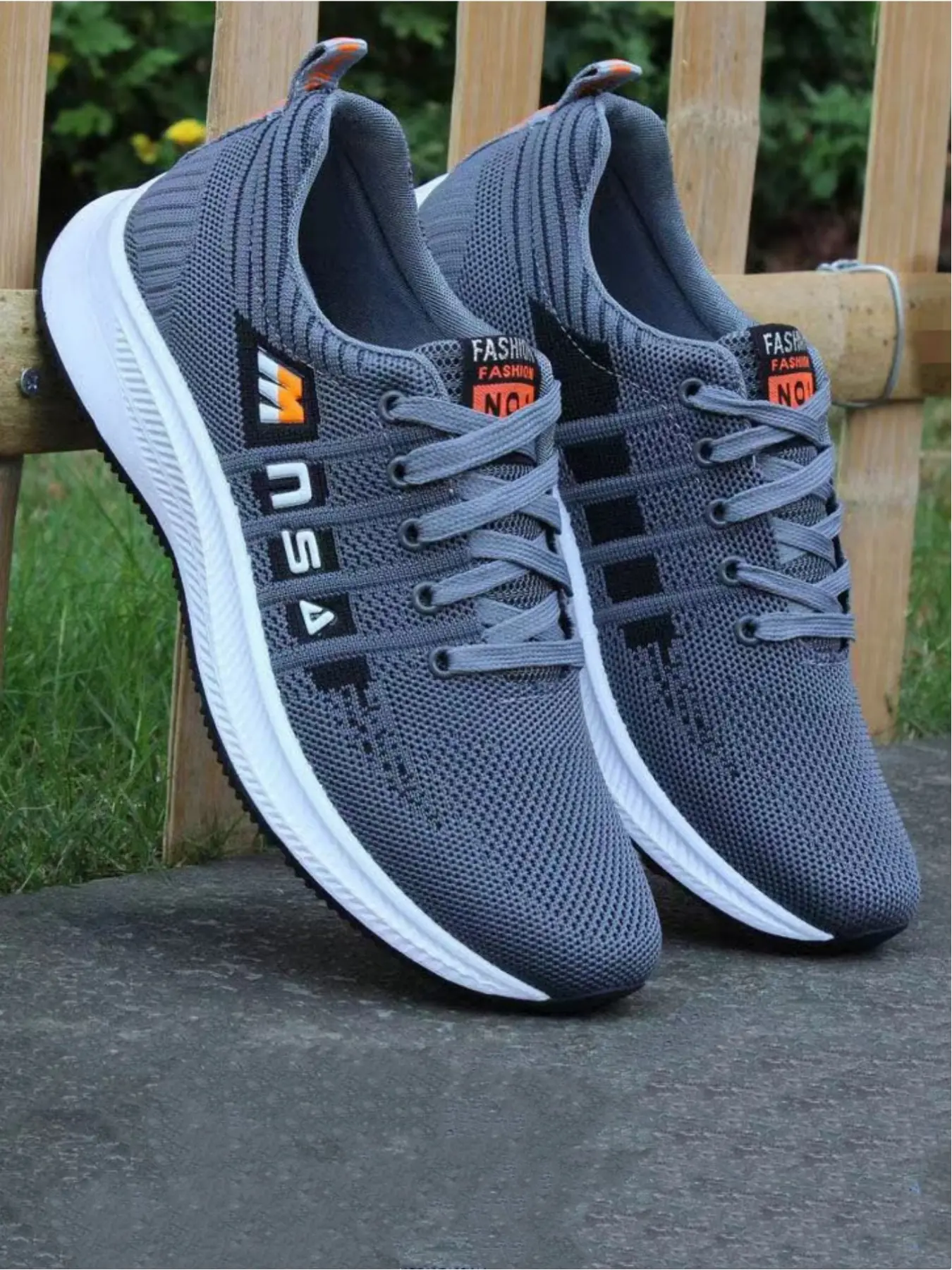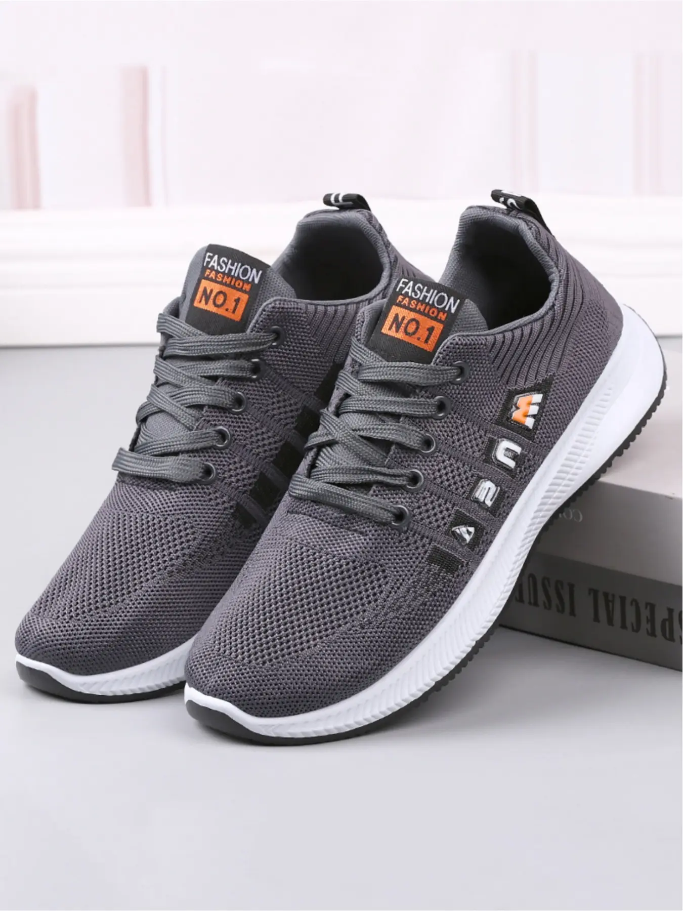 Men's casual sports shoes, made of breathable and comfortable mesh material, with stylish and eye-catching labels, personalized letter decoration design, simple and contrasting red border lines, suitable for daily wear and easy travel