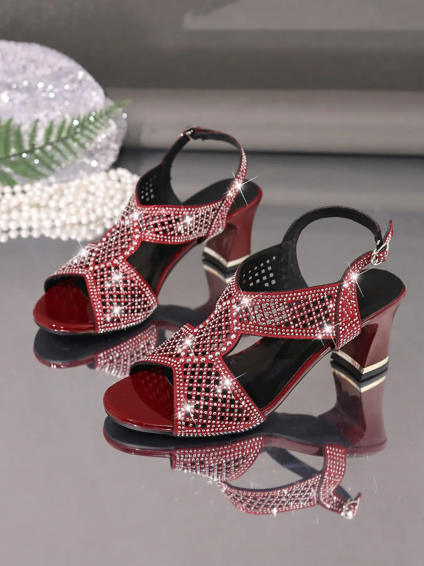 Elegant Women's High Heel Sandals, Rhinestone Hollow Out Open Toe Round Head Design, Comfortable Versatile for Parties, Office, Events