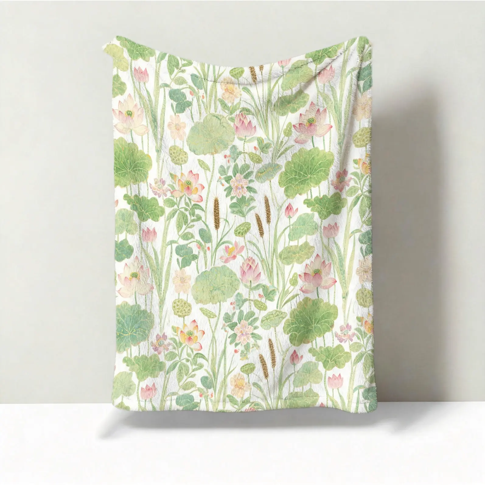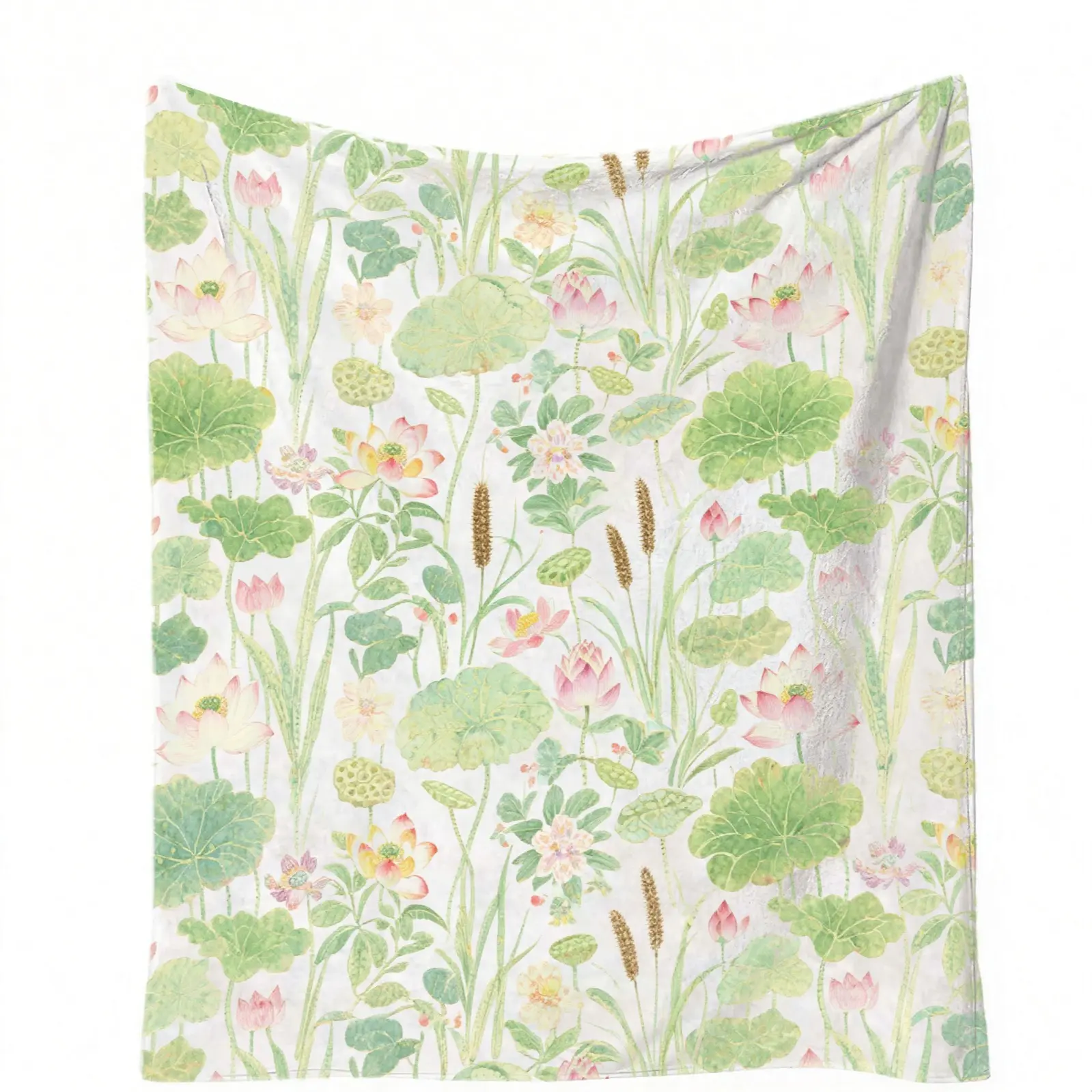 1 Piece Watercolor Lotus Pond Throw Blanket, HD Digital Single-Sided Printed Flannel Blanket, Super Soft Cozy Plush Warm Gift Blanket for Sofa Bed Travel Camping Decor