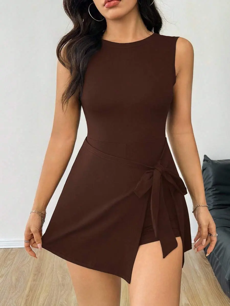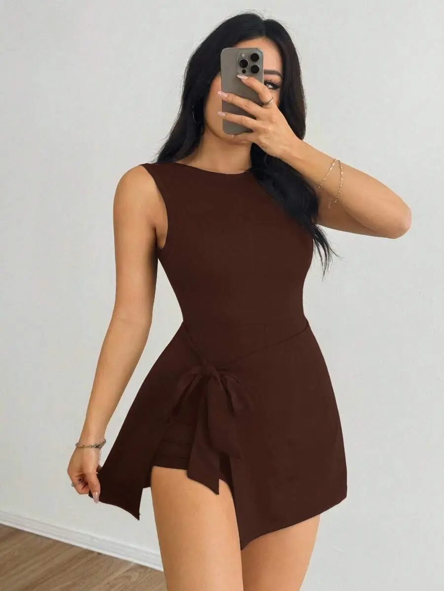 ARTYOTI Women's Coffee Brown Minimalist Sleeveless Jumpsuit