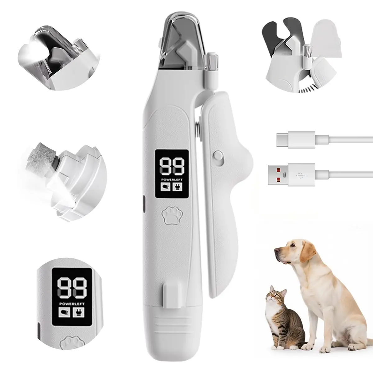 This 2-in-1 pet nail clipper & grinder is designed for stress-free at-home grooming, compatible with small to large pets including dogs, cats, rabbits and more. One tool handles both clipping and grinding to streamline your pet care routine efficiently.