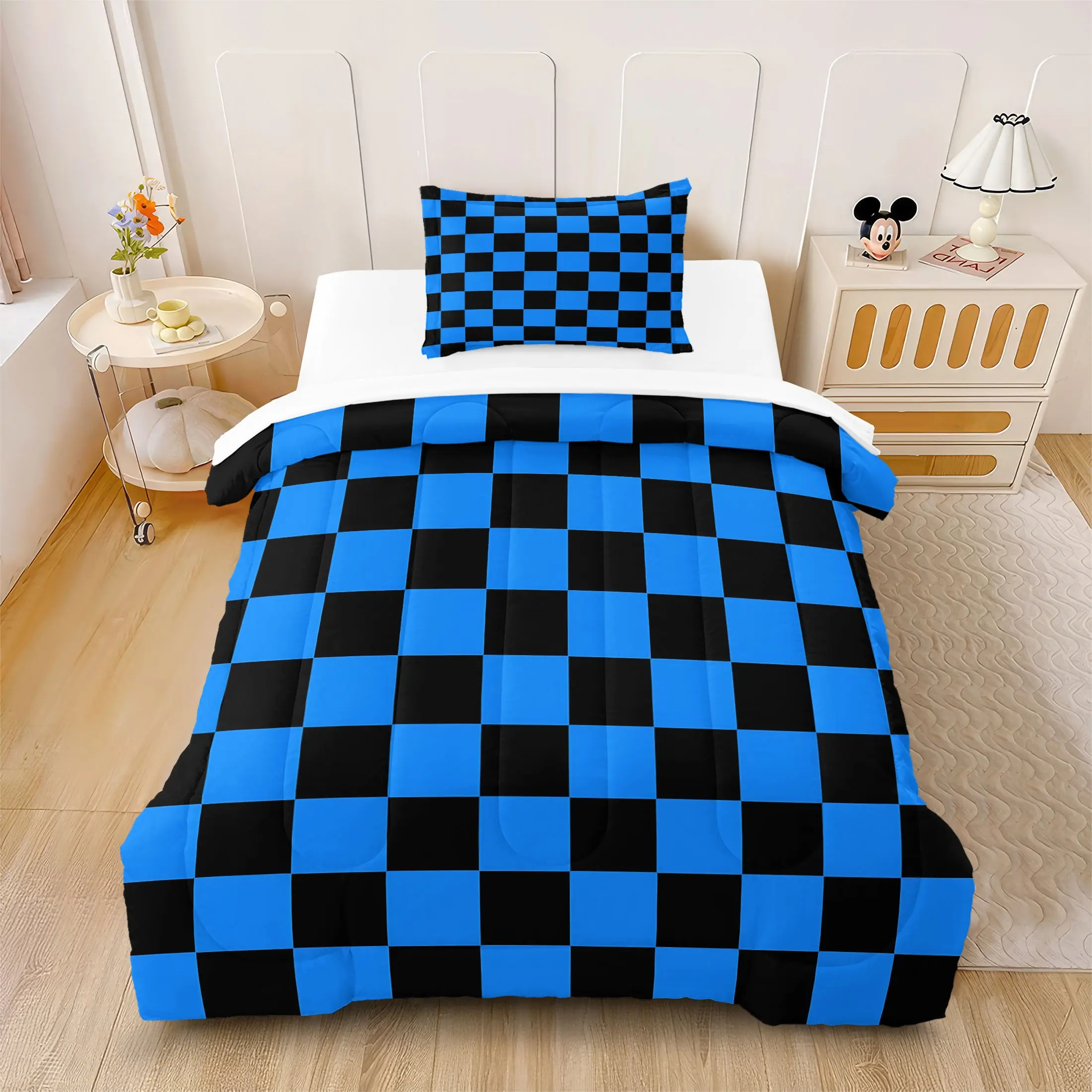 5. 3 Pcs Geometric Checkerboard Print Comforter Set, Modern Minimalist Bedding Set, Soft Warm Lightweight with HD Digital Print, Fade Resistant & Breathable, Ideal for Bedroom Dorm Guest Room Decor, All Season Use