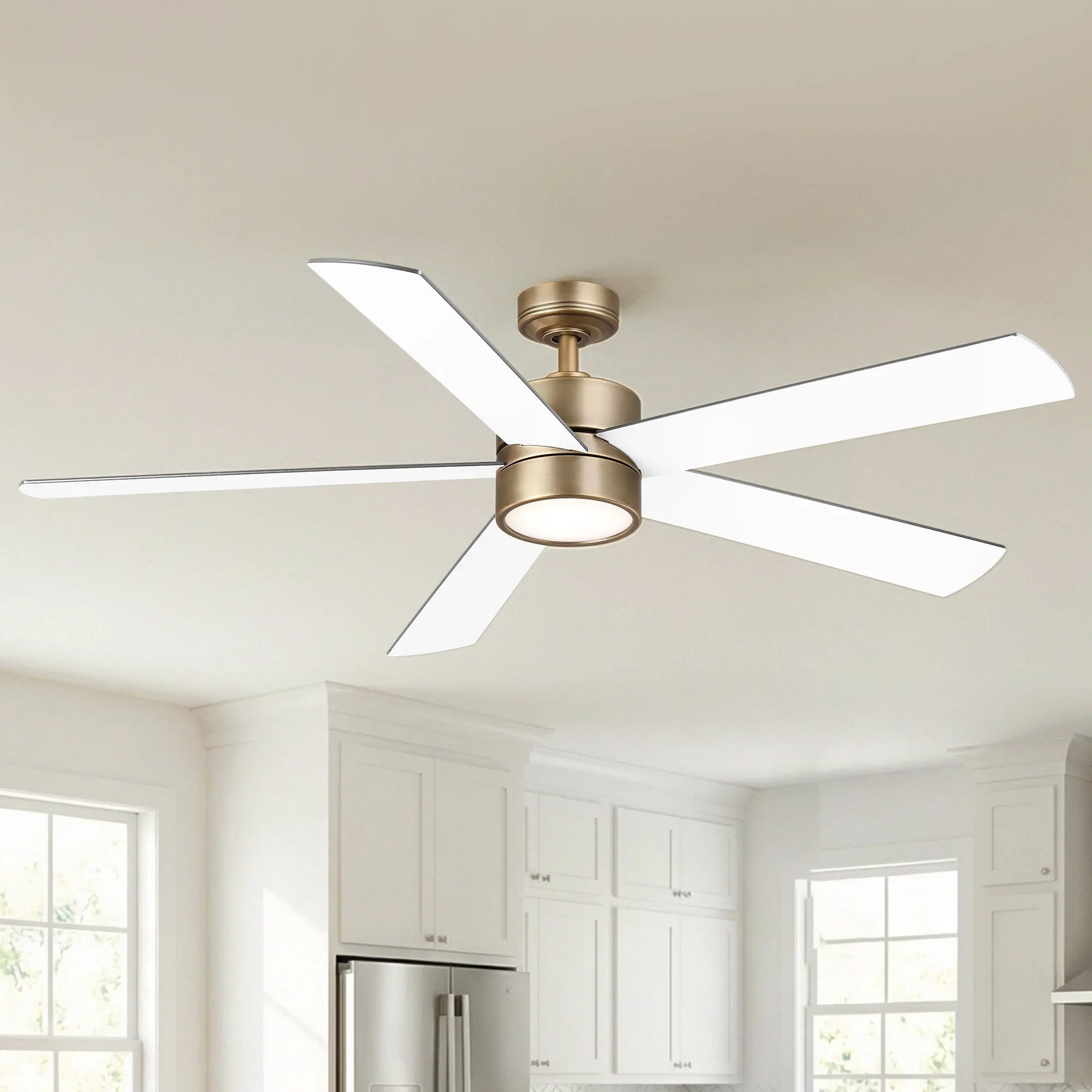 【Textured Clash of Tones】: The body is finished in a brushed brass with a metallic feel, fan blades are white on one side, brown on the other – easily flip to complement your room’s color scheme.