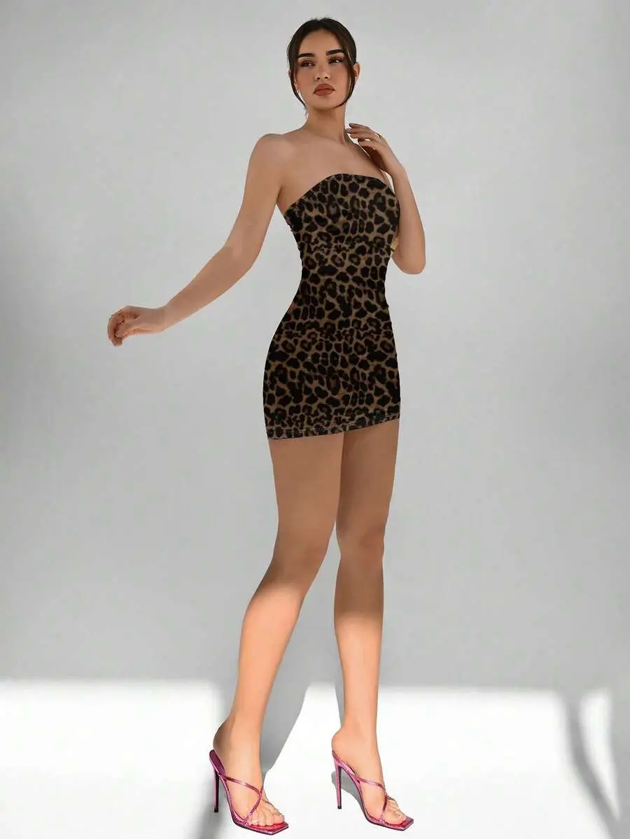 ARTYOTI Leopard Print Bodycon Cami Dress, Casual Party Elegant Vintage Style, Comfortable For Spring & Autumn,Wedding Guest Dress Women