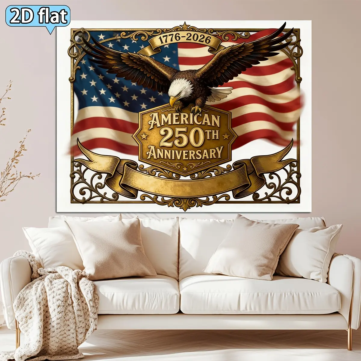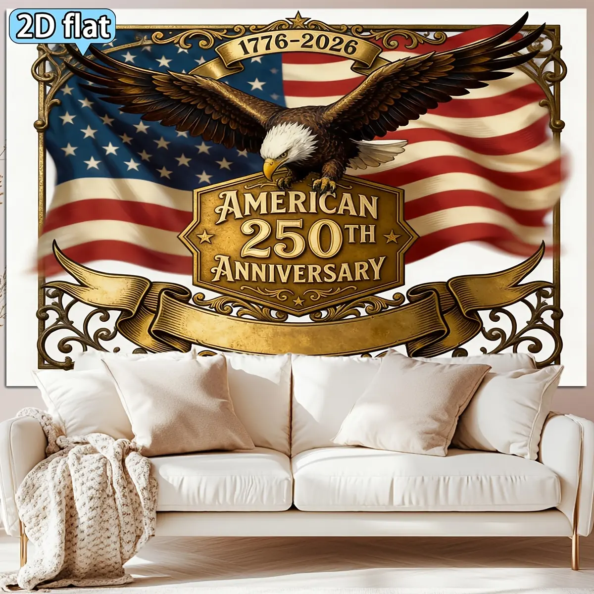 2D Flat - 2D Flat - 2D Flat. 1pc 250Th Anniversary Themed Backdrop Cloth, Golden Eagle Flag 250Th Anniversary Decoration Party Background Tapestry