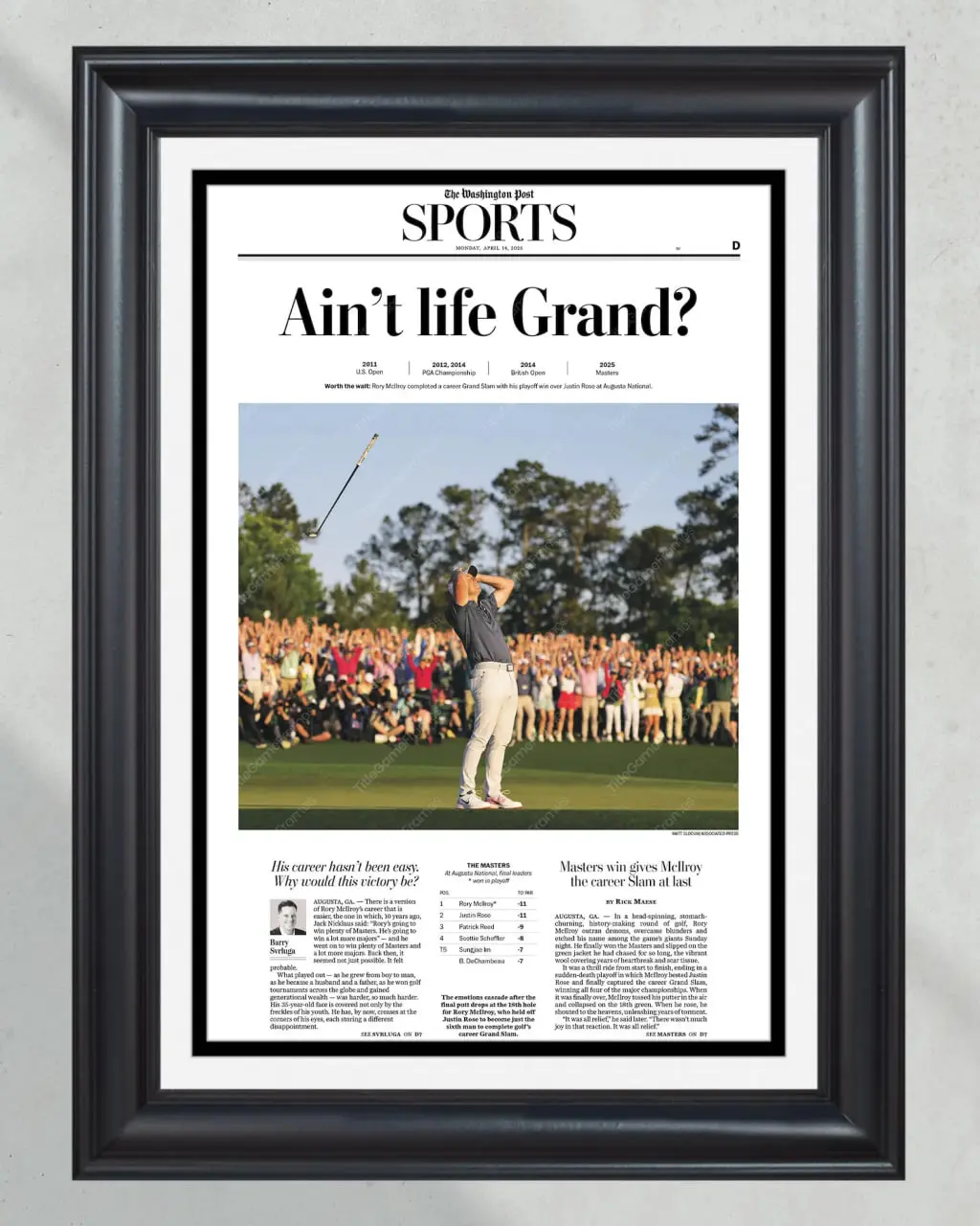 Masters Champion Rory McIlroy 'Ain't life Grand' Front Page Newspaper Augusta