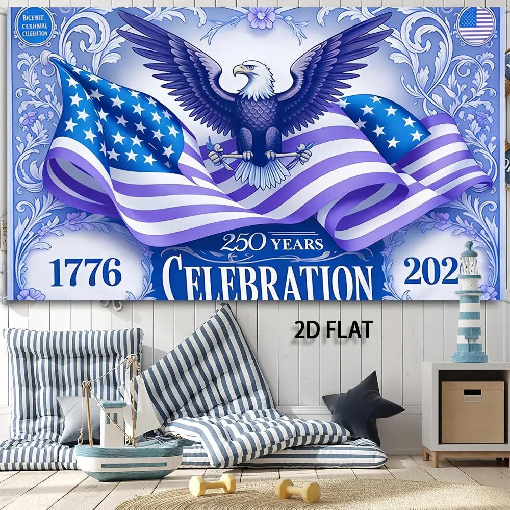 2D Flat - 2D Flat - 2D Flat 1pc 250Th Anniversary Celebration Theme Blue White Purple Independence Day Decoration Banner Tapestry