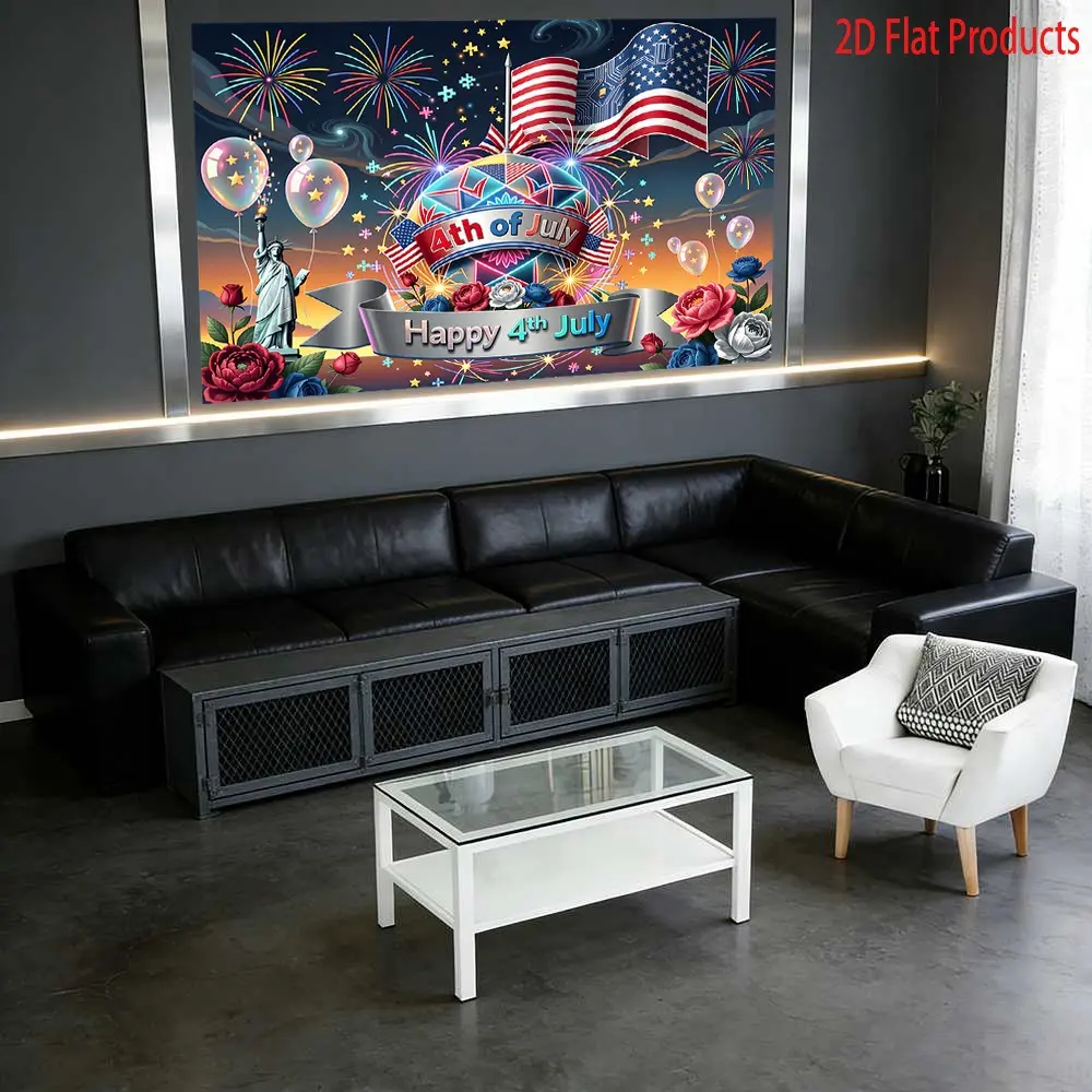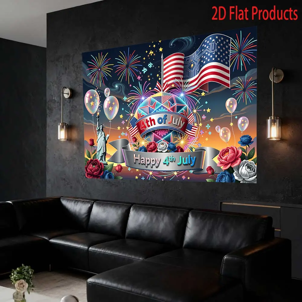 2D Flat, 1pc 250th Anniversary Holographic Mandala Wall Tapestry - UV Printed Chrome Liberty Suitable for, Birthday Backdrop, Photography Background, Multifunctional Indoor/Outdoor Decoration with Sparkling Holographic, 2D Flat