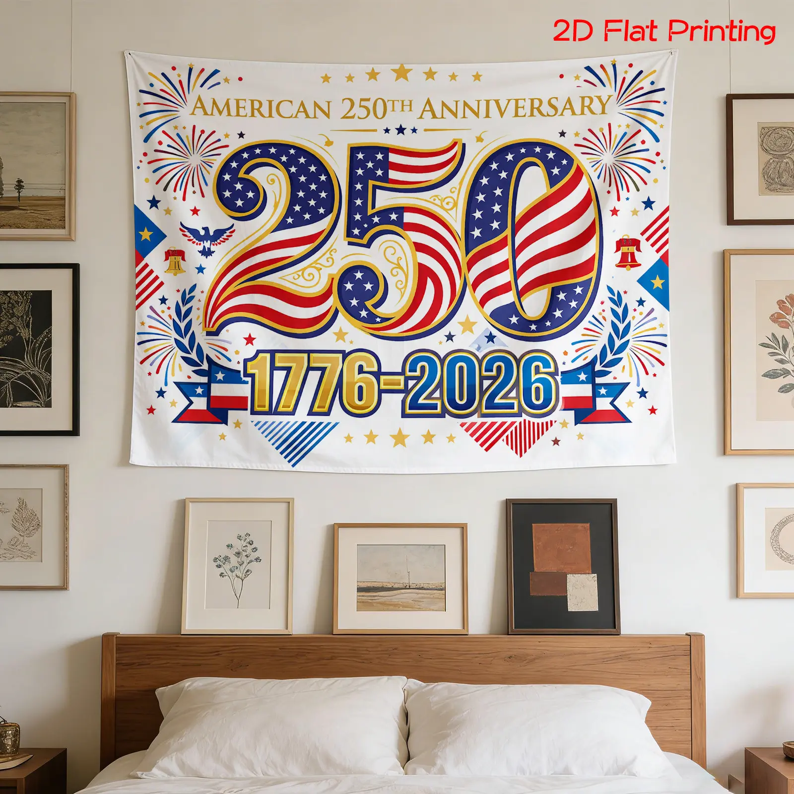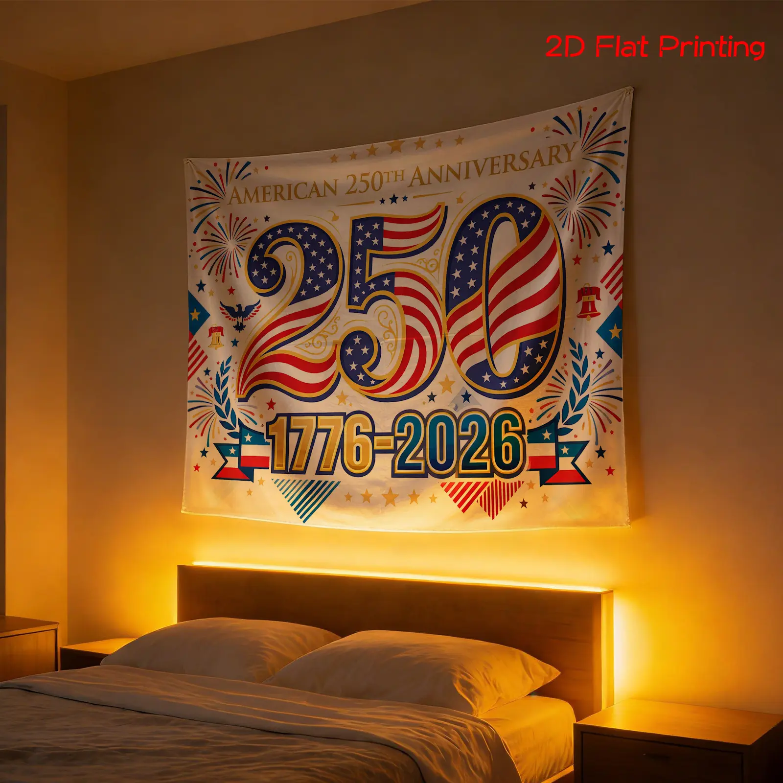2D Flat - 2D Flat - A Flat Printed Backdrop Featuring a Patriotic Design for The 250Th Anniversary Celebration from 1776 to 2026, Complete with Fireworks. Ideal for Photography, Holiday Gifts, Party Decorations, Home Decor, And Studio Enhancements