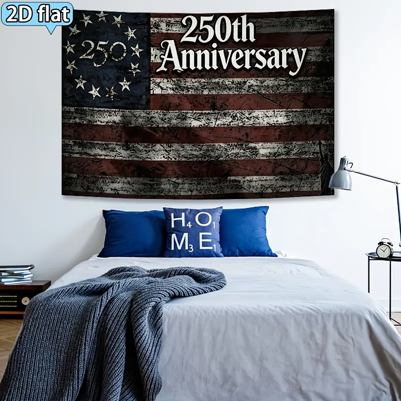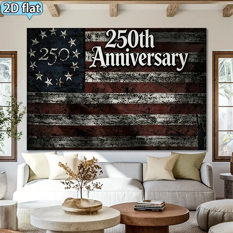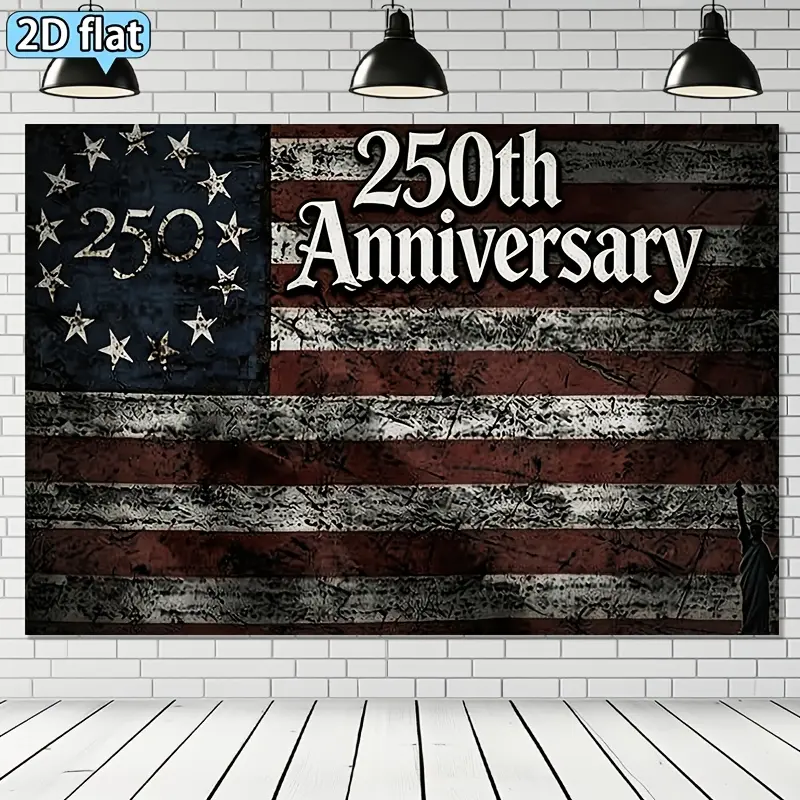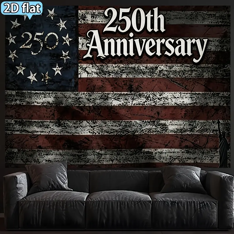 1pc 250th Anniversary Retro Distressed Flag Banner Tapestry, Horizontal Vintage Red & White Cloth Background Decor for Celebration Parties, Classic Wall Hanging for 250 Year Events