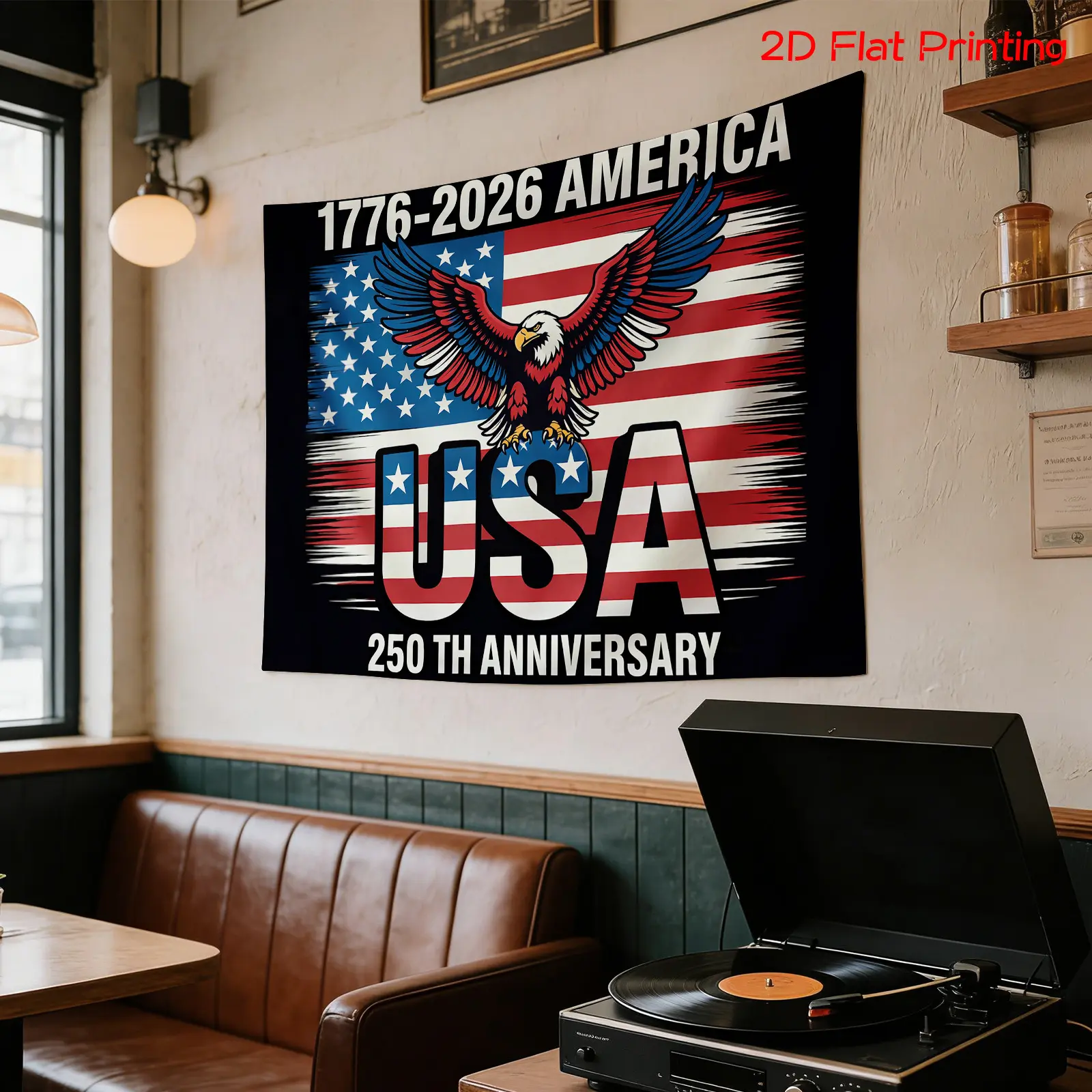 2D Flat - 2D Flat - A Flat Printed Backdrop Featuring The 250Th Anniversary of America from 1776 to 2026, Adorned with a Patriotic Eagle And Flag, Perfect for Photography, Holiday Gifts, Party Decor, Home Decoration, And Studio Enhancements