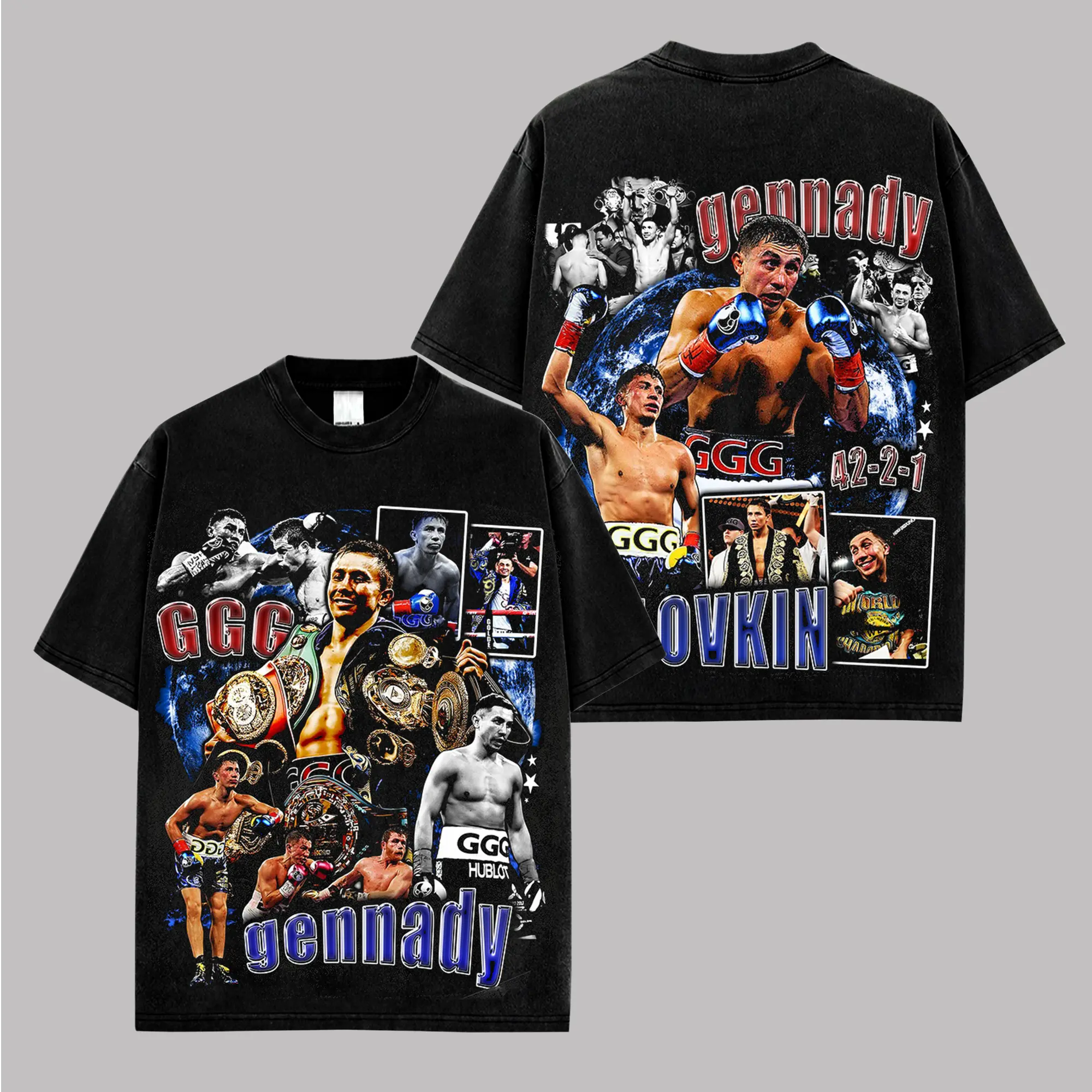 'GGG' Gennady Golovkin Boxing Graphic Premium Washed Cotton T-Shirt For Fight Fan, Triple G Champion Fan Shirt, Gennadiy Gennadyevich Golovkin Merch, Golovkin Inspired Fight Tee Gift