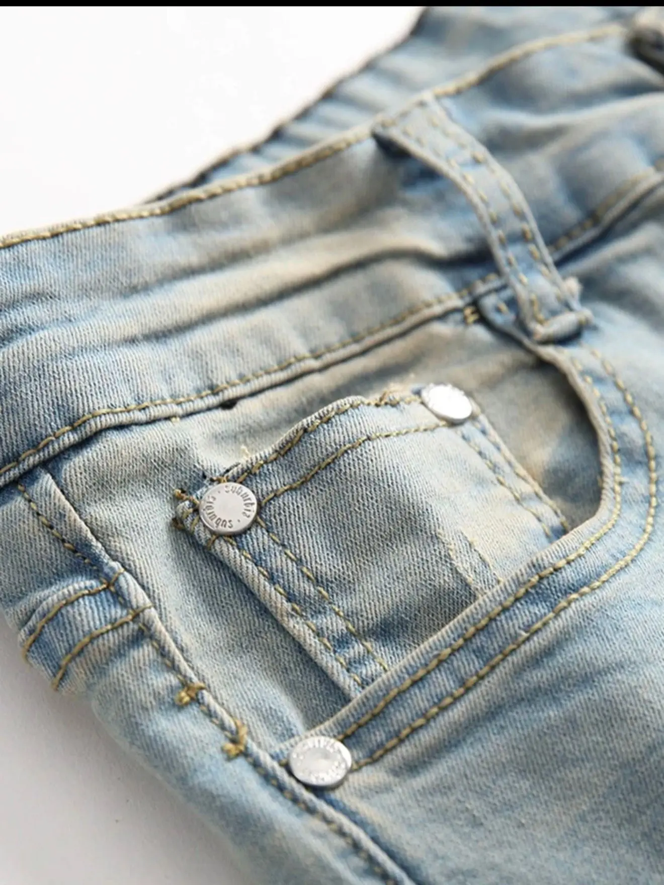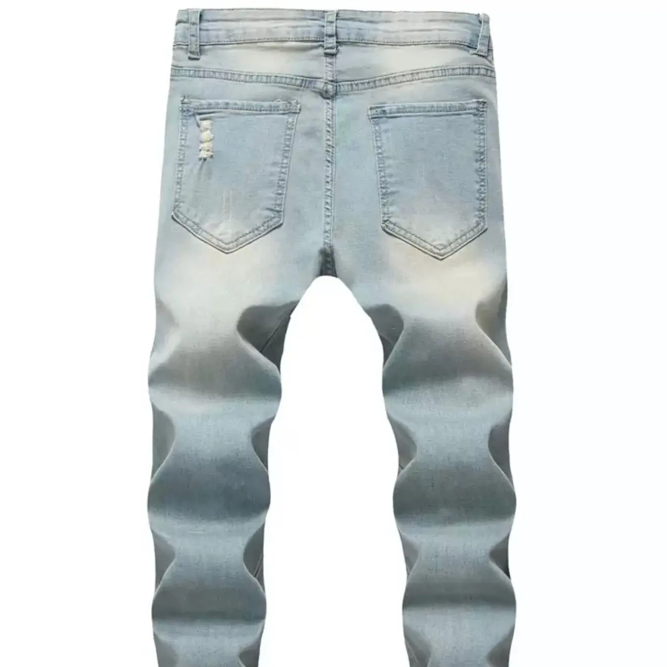 Manfinity LEGND Men Cotton Washed Ripped Skinny Jeans Plain Slim Fit Long Distressed Light Blue Cargo Jeans Light Jeans, For Husband, Boyfriend Gifts Going Out Party Urban Work Vacation