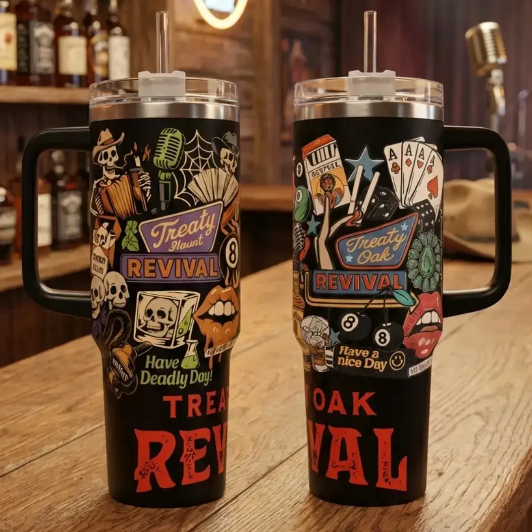 Treaty Oak Revival 40oz & 20oz Western Tumbler – Rustic Country Concert Style Insulated Cup with Straw. Honky Tonk Style Insulated Mug. Perfect Gift for Country Music Lovers
