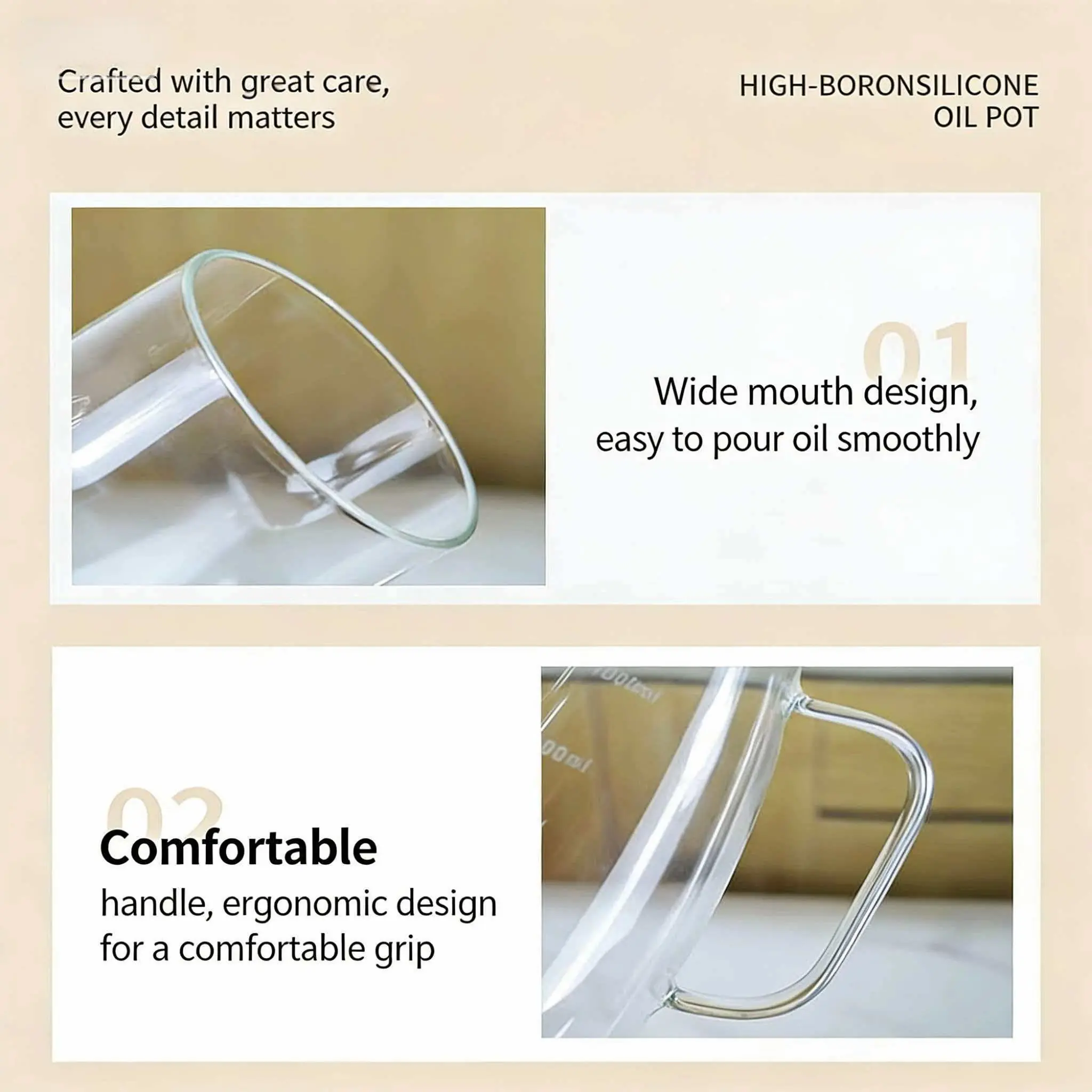 【High Borosilicate】: Made from high borosilicate glass, ensuring durability and resistance to thermal shock.